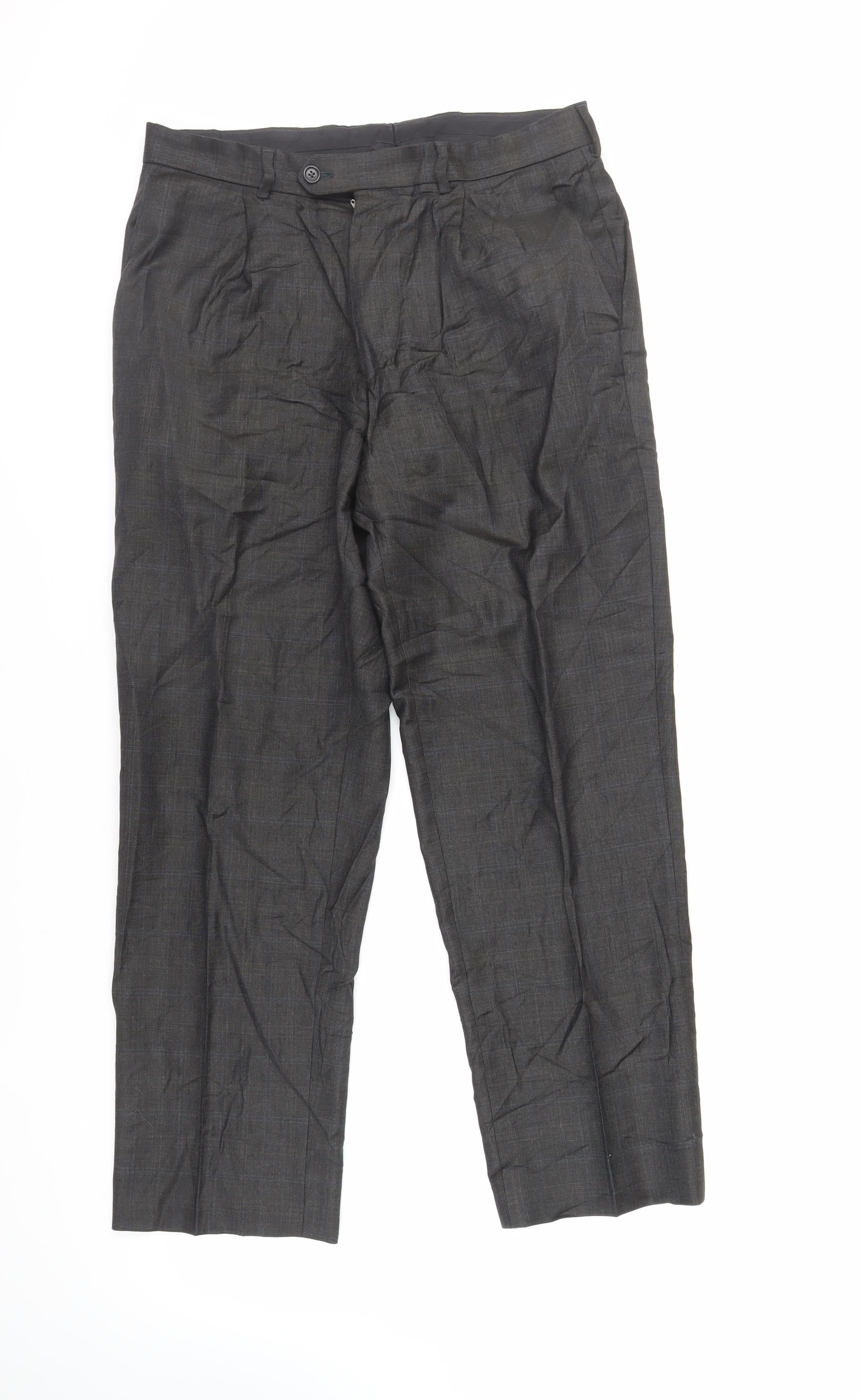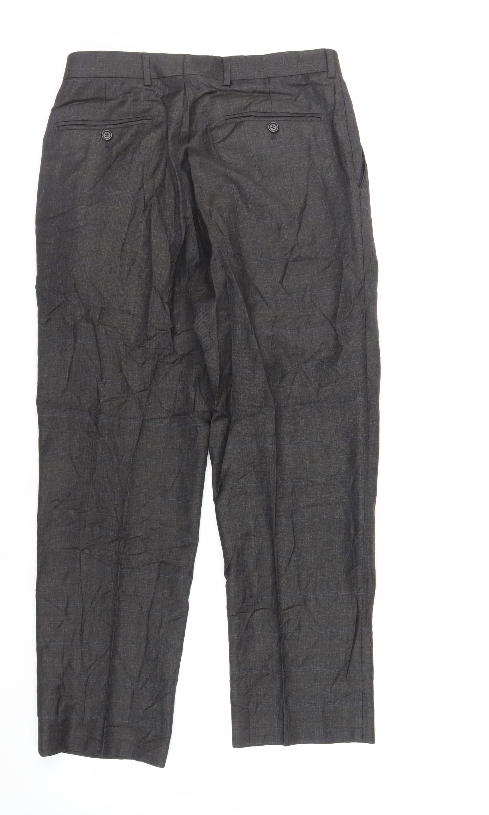 Marks and Spencer Mens Grey Plaid Wool Dress Pants Trousers Size 32 in L29 in Regular Zip
