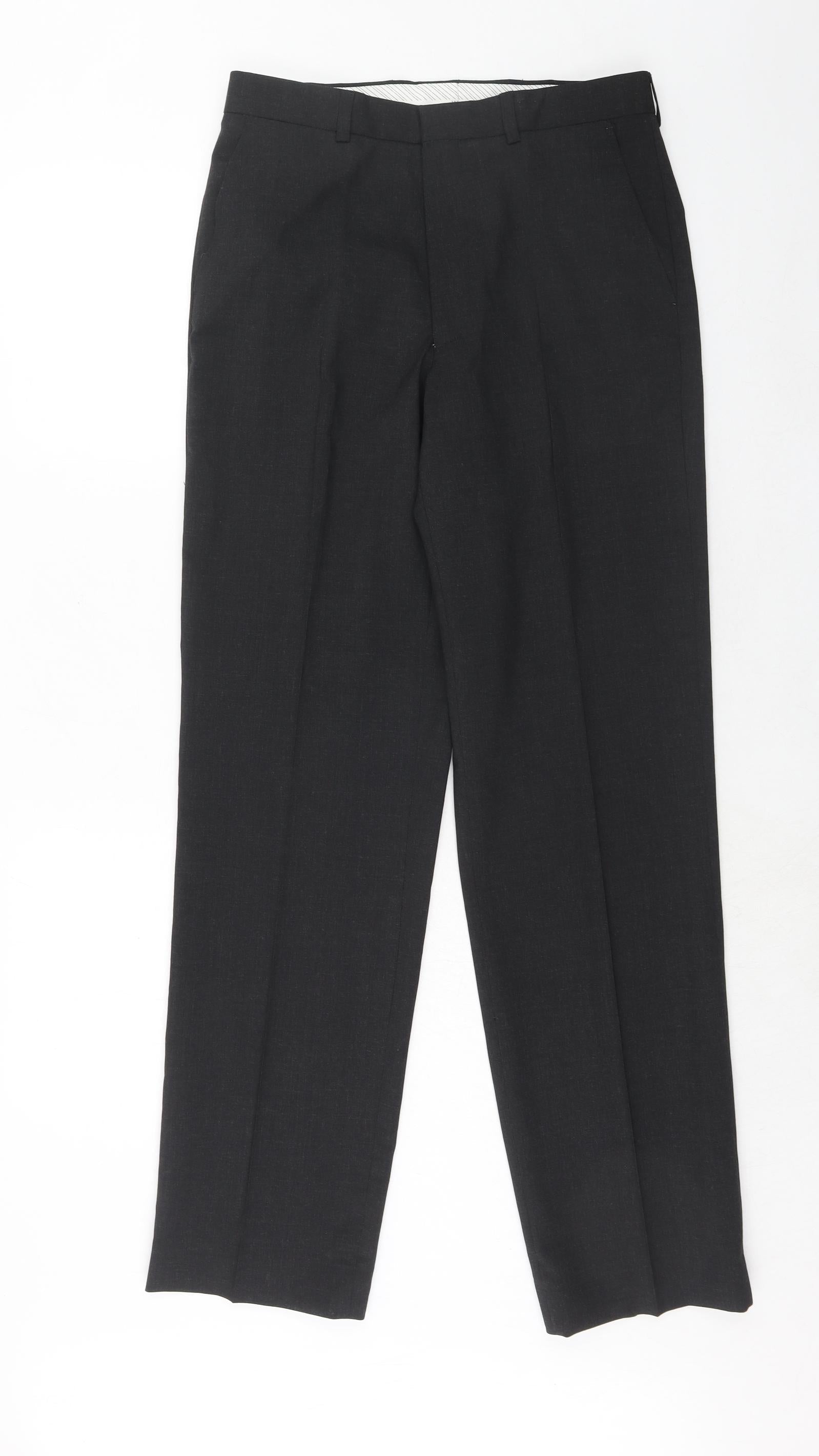 Marks and Spencer Mens Grey Polyester Dress Pants Trousers Size 30 in L33 in Regular Hook & Eye