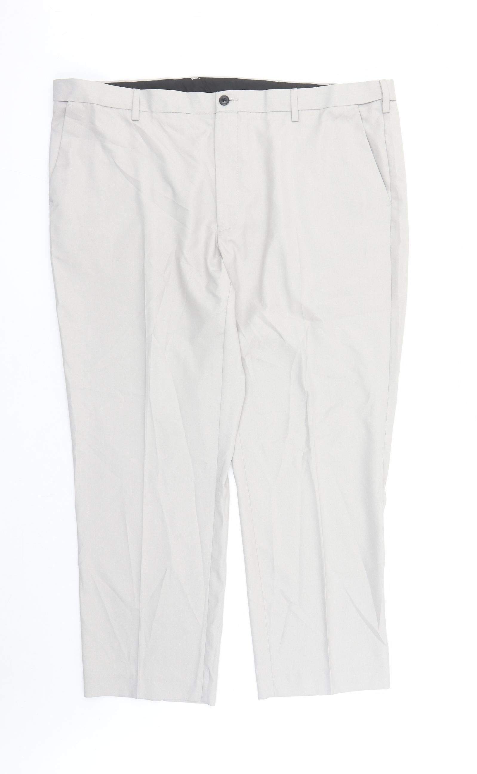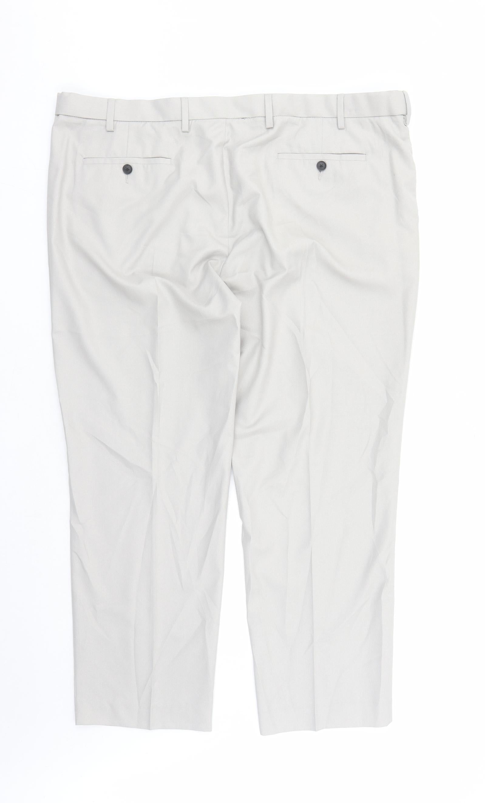 Marks and Spencer Mens Grey Polyester Trousers Size 44 in L28 in Regular Zip - Pockets Short Leg