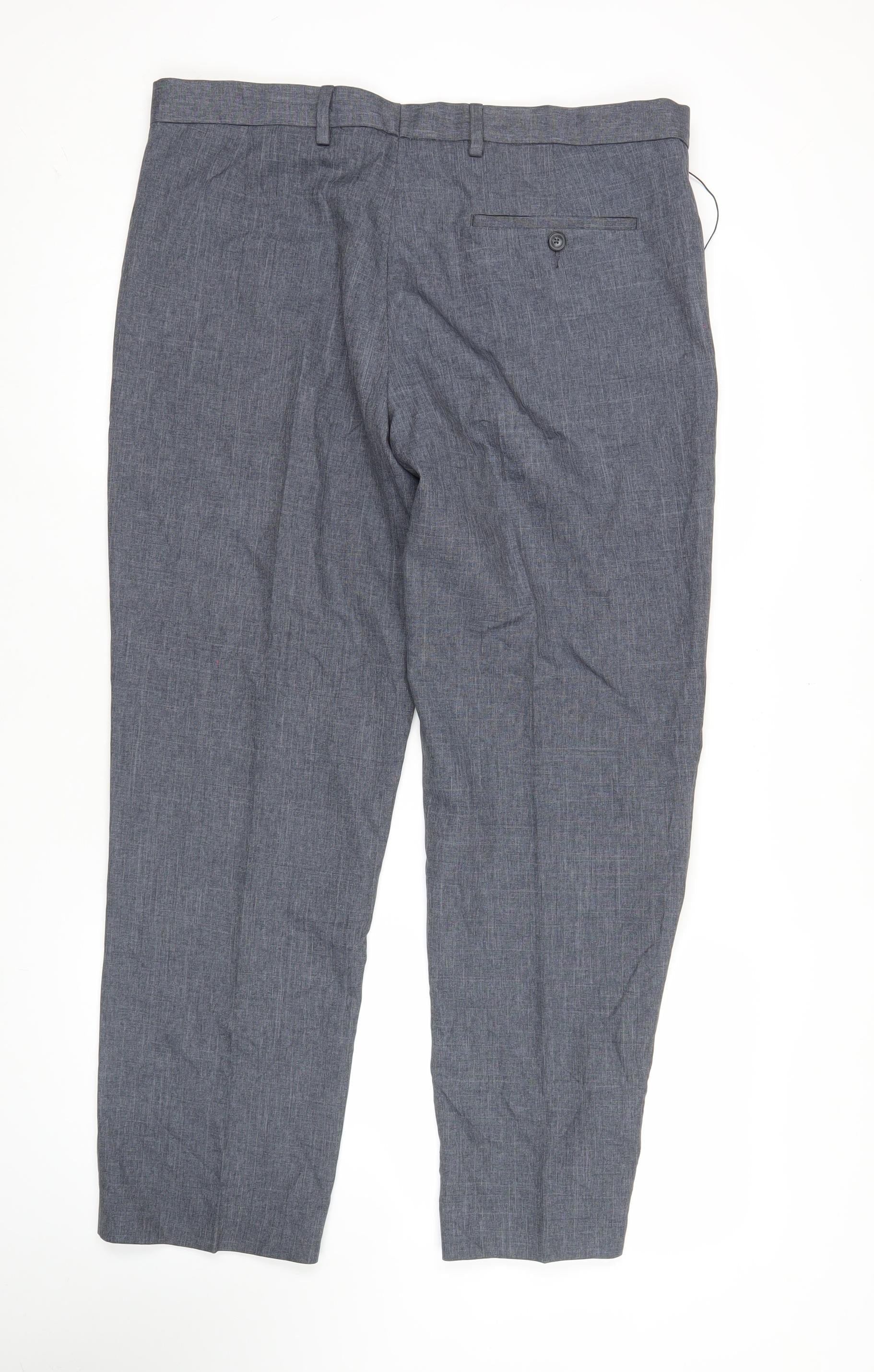 Marks and Spencer Mens Grey Regular Fit Straight Leg Trousers 36W 29L