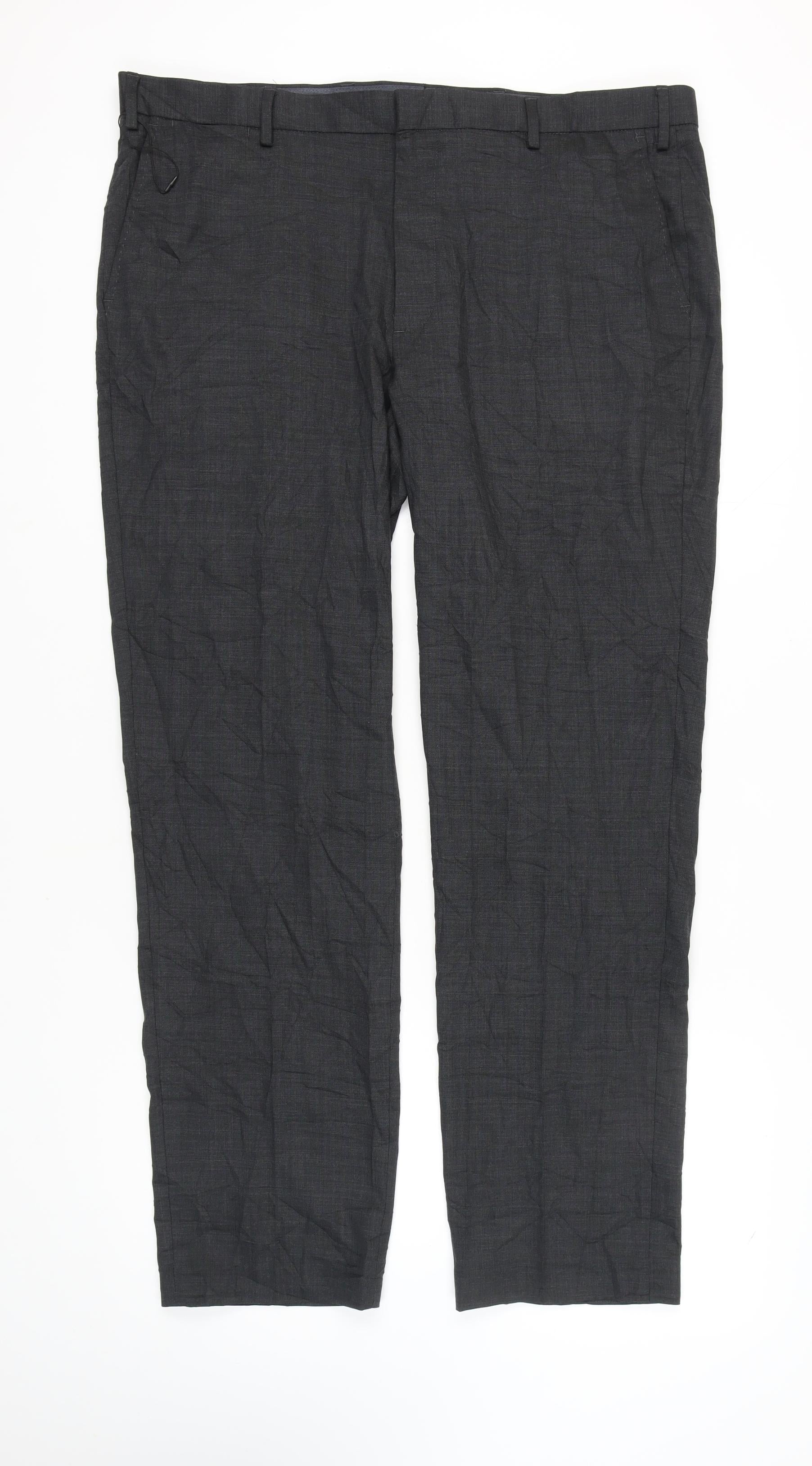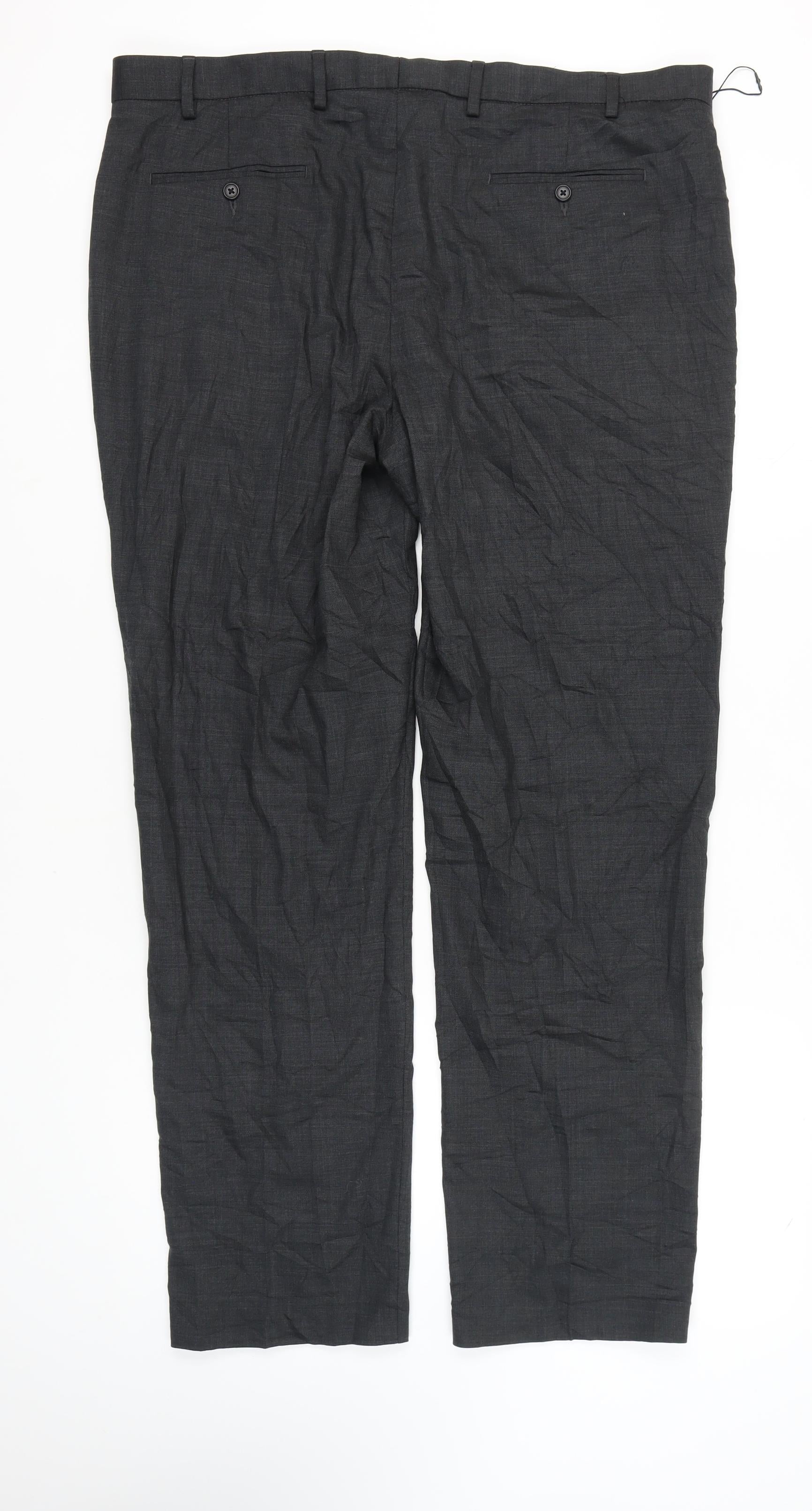 Marks and Spencer Men's Grey Regular Fit Trousers, Size 42