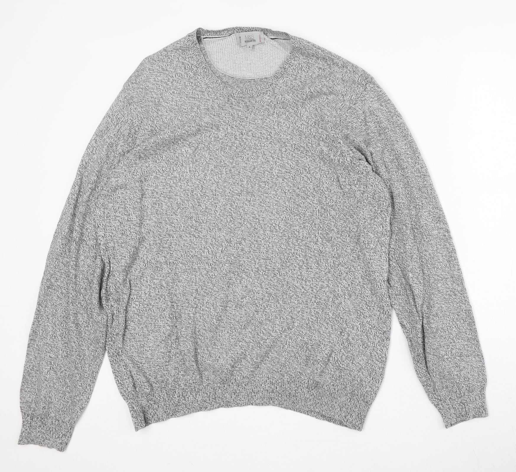 Marks and Spencer Mens Grey Round Neck Acrylic Pullover Jumper Size L Long Sleeve