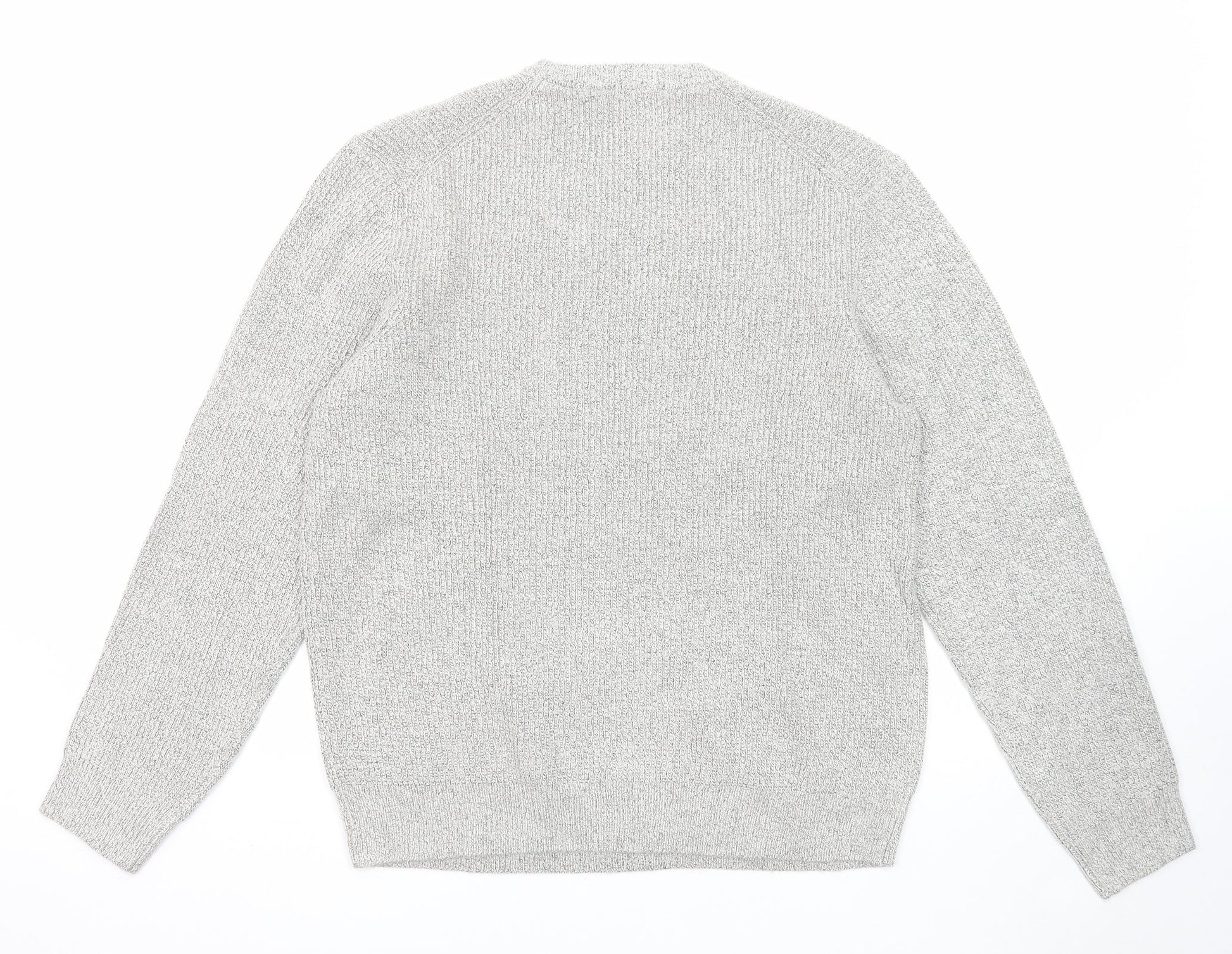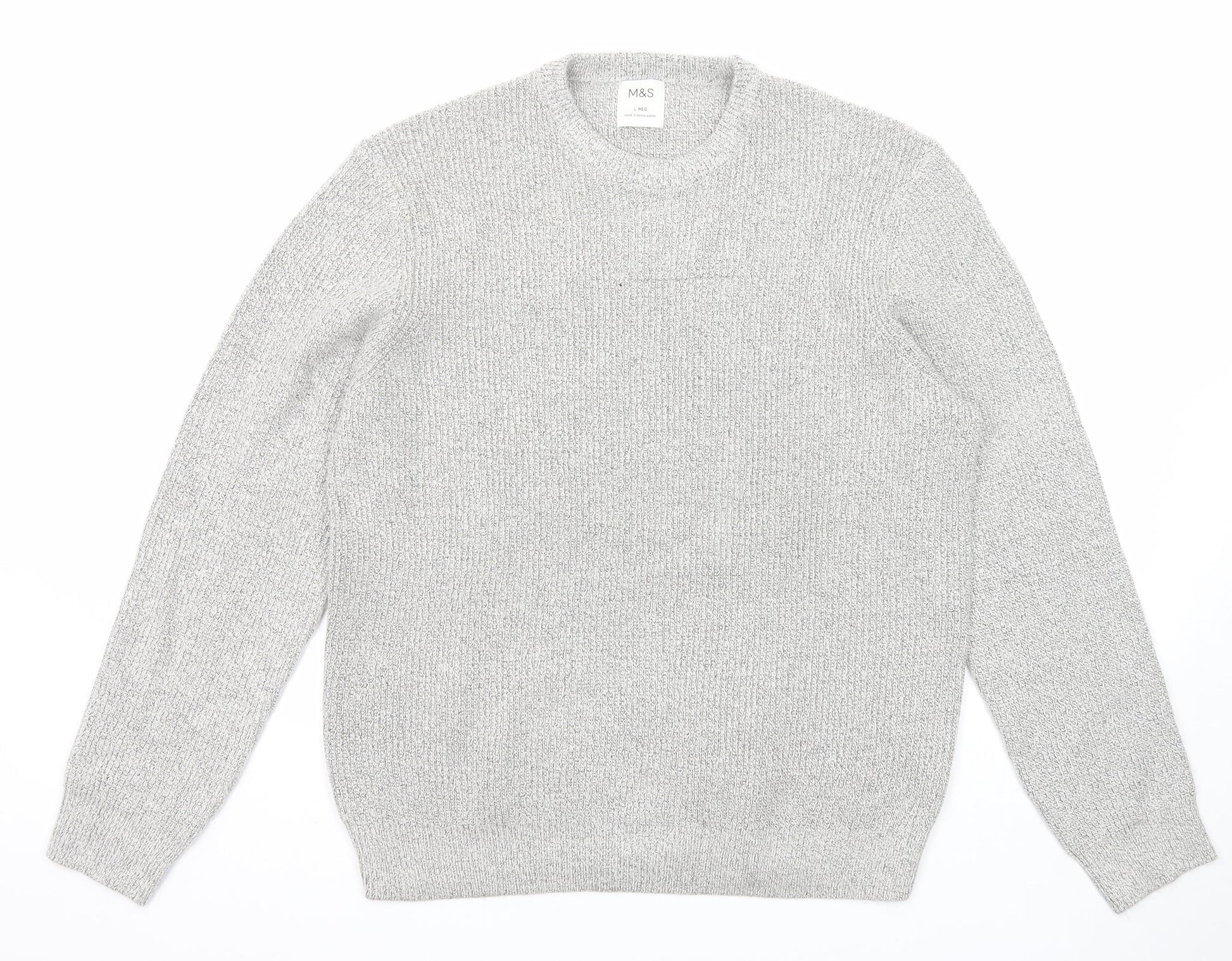 Marks and Spencer Mens Grey Round Neck Acrylic Pullover Jumper Size L Long Sleeve