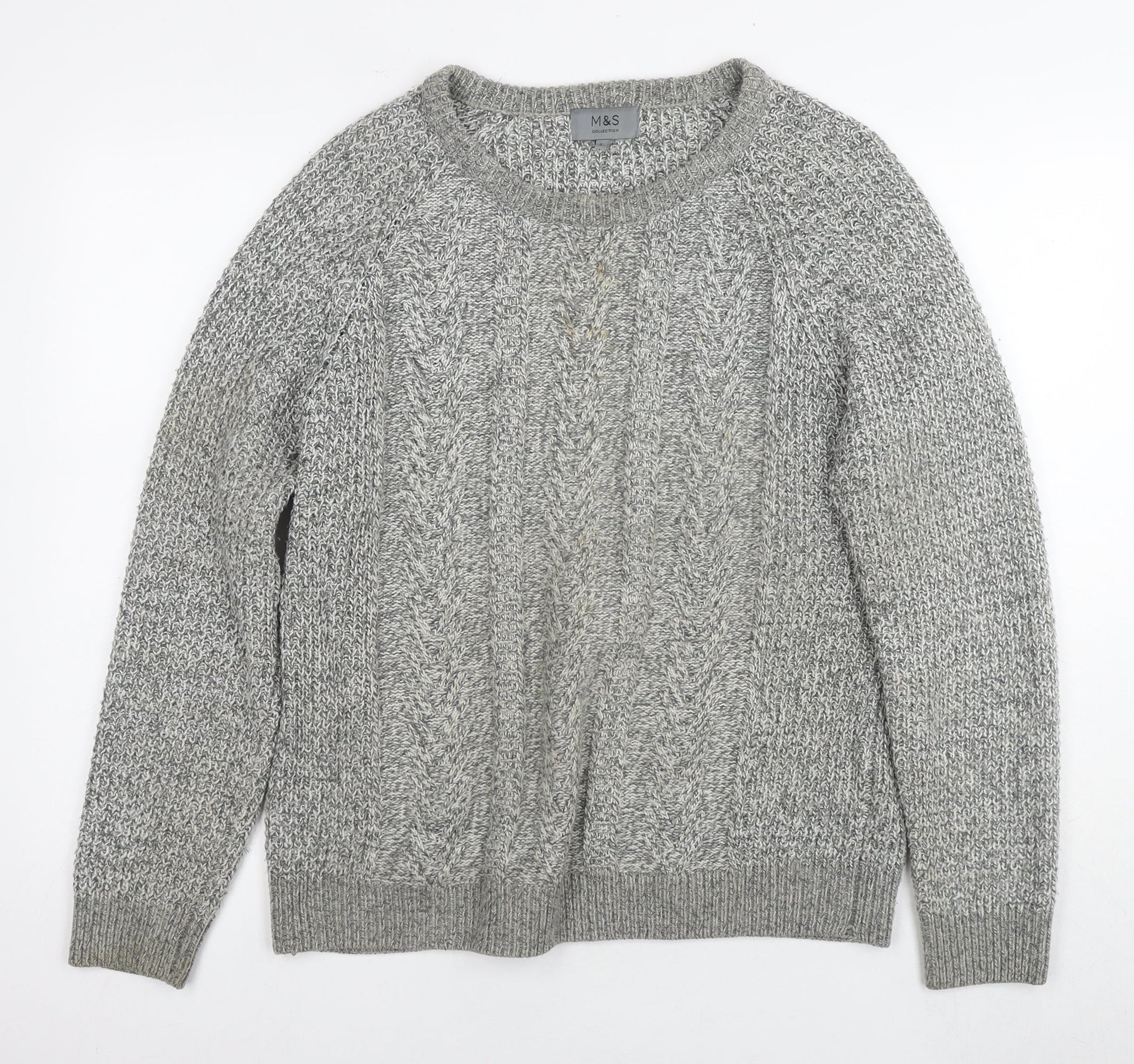 Marks and Spencer Mens Grey Round Neck Acrylic Pullover Jumper Size L Long Sleeve