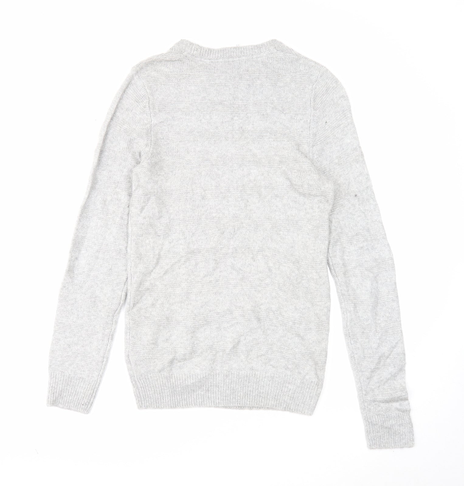 Marks and Spencer Mens Grey Round Neck Acrylic Pullover Jumper Size S Long Sleeve