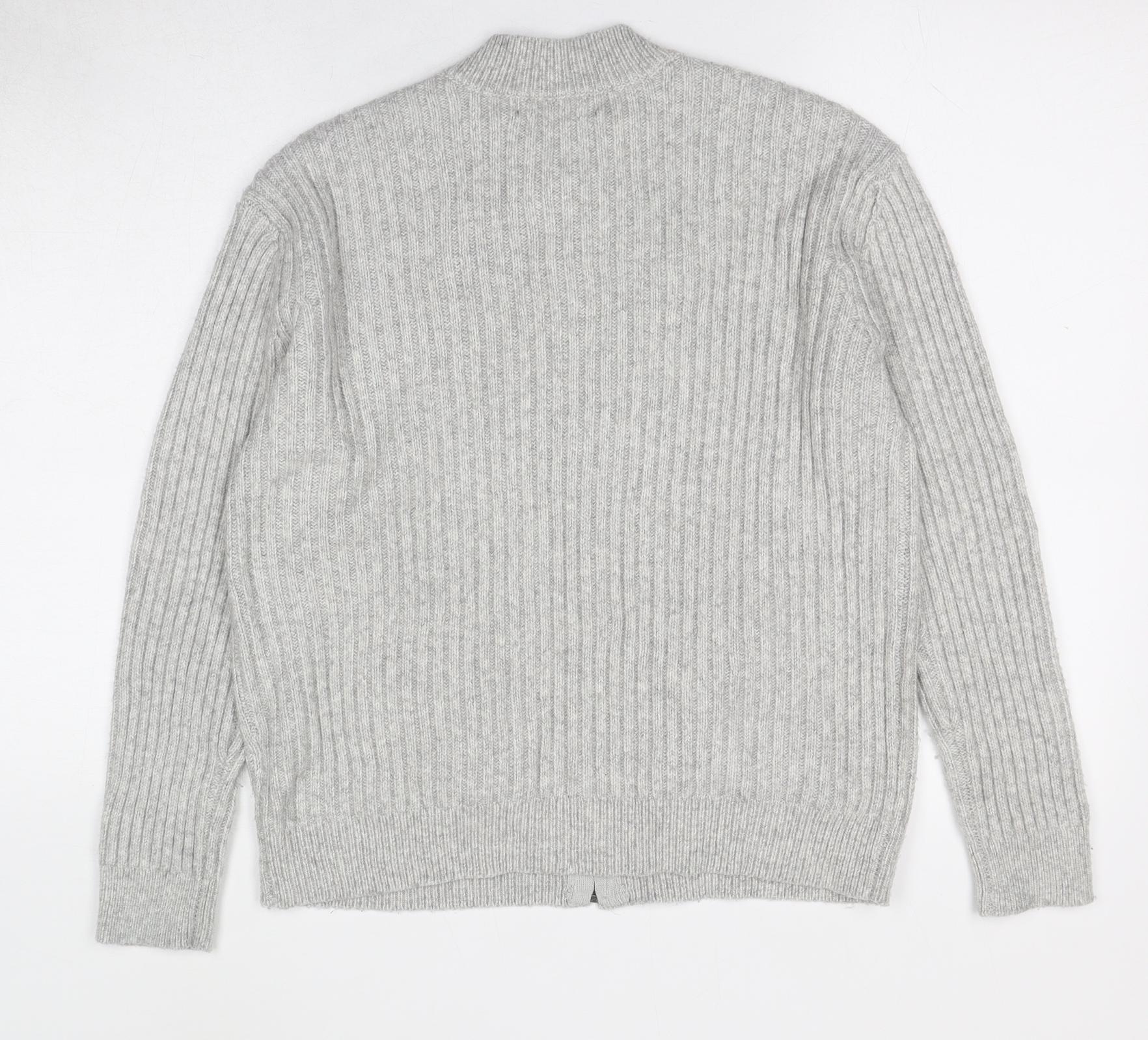Marks and Spencer Mens Grey Round Neck Polyester Full Zip Jumper Size S Long Sleeve