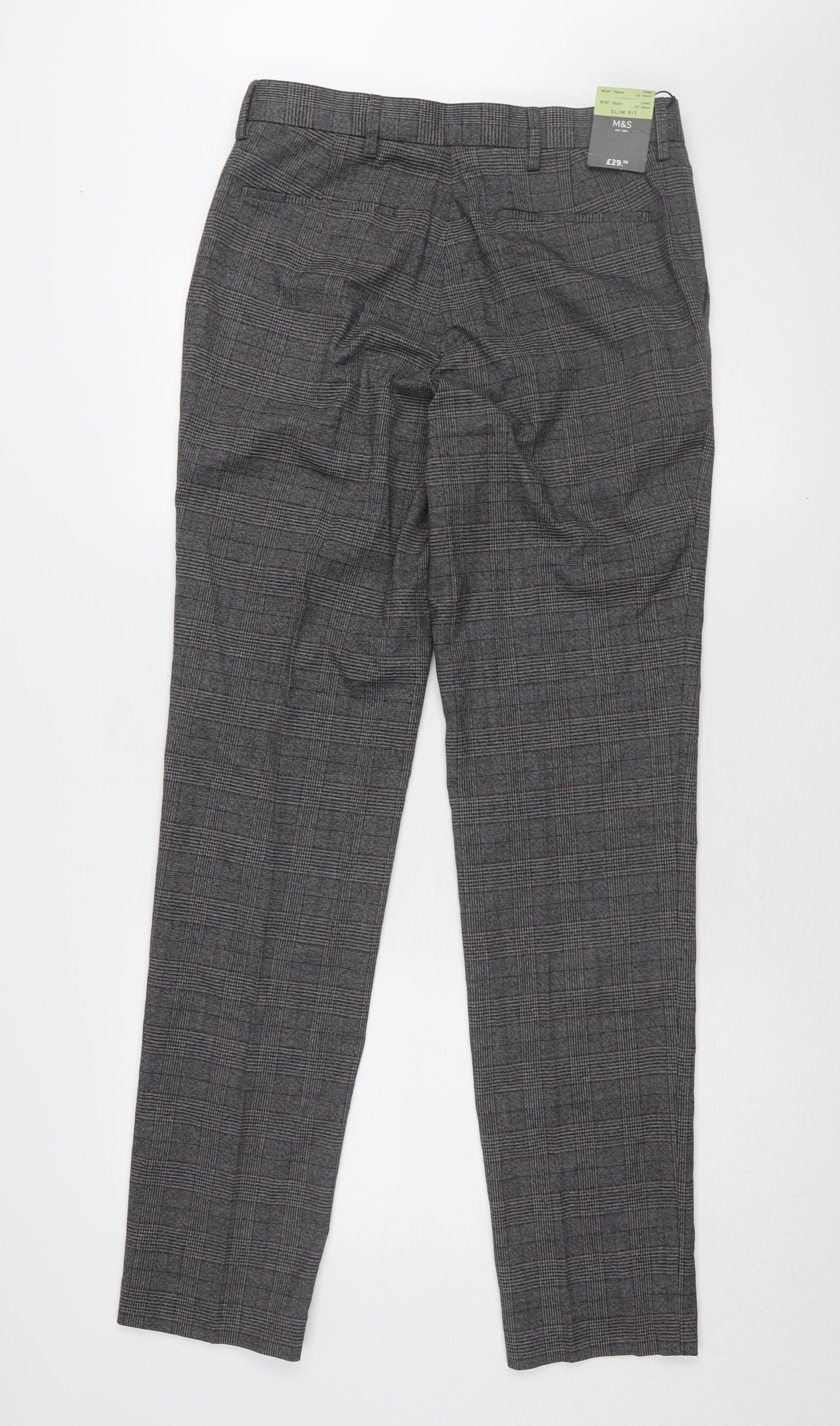 Marks and Spencer Men's Grey Slim Fit Check Trousers
