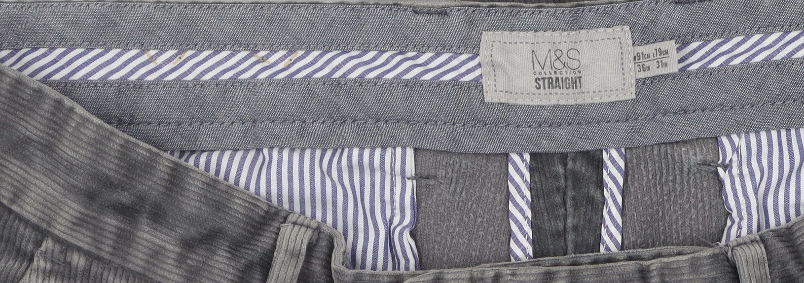 Marks and Spencer Men's Grey Straight Corduroy Trousers 36
