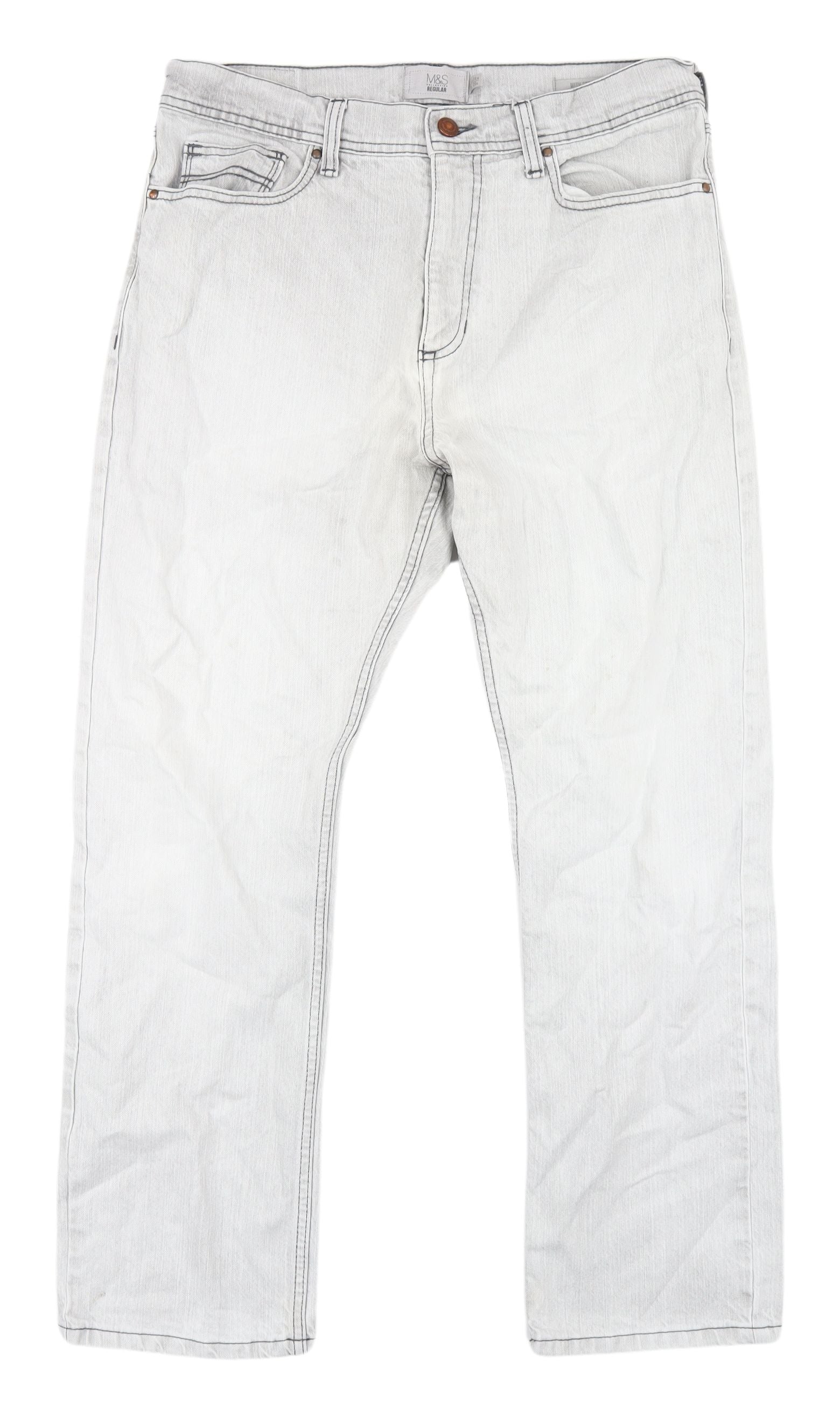 Marks and Spencer Men's Grey Straight Jeans, Size 32