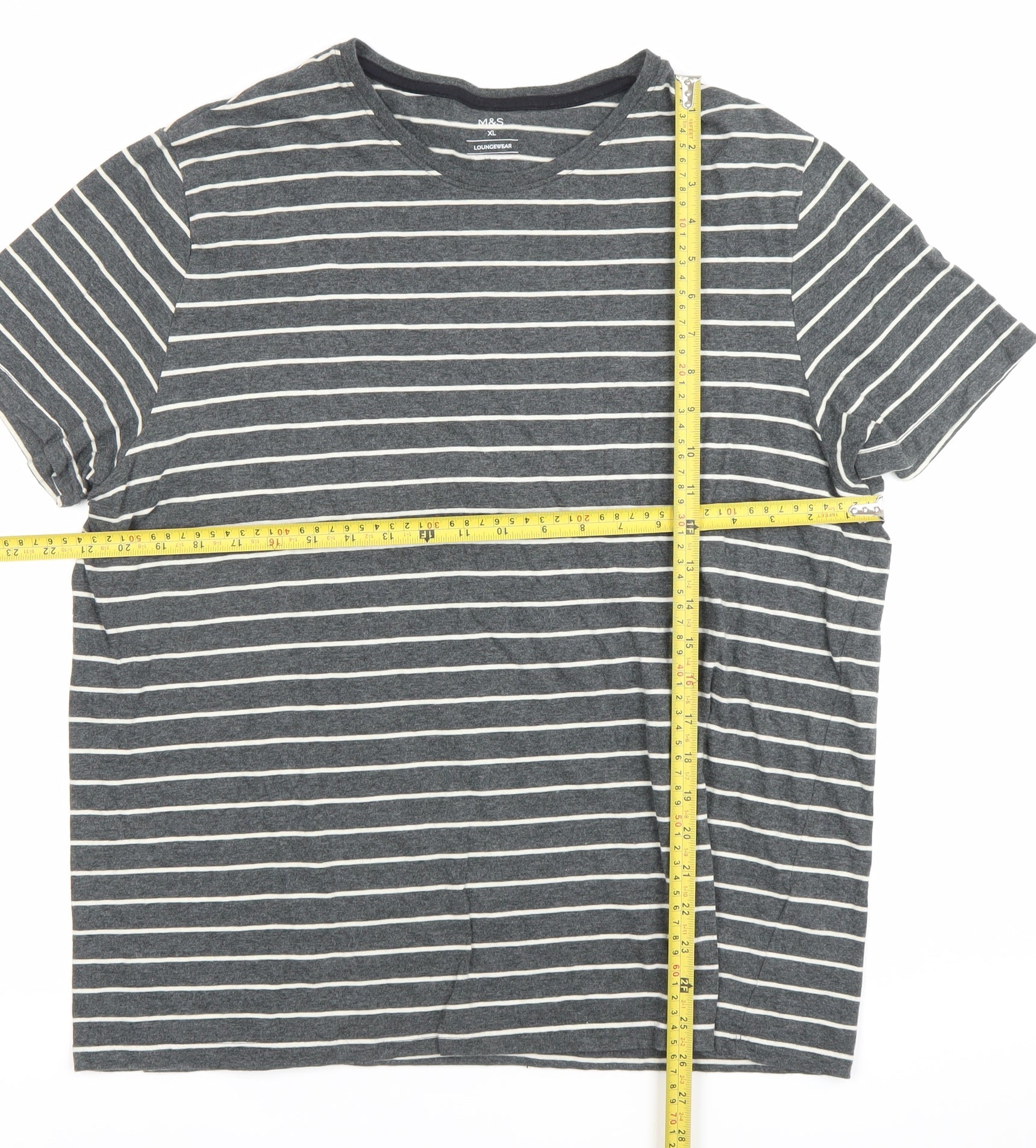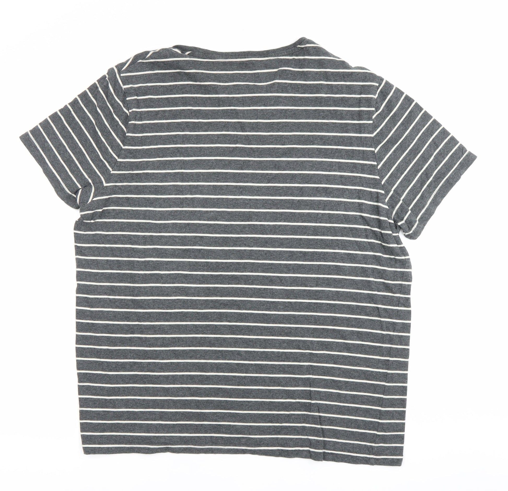 Marks and Spencer Men's Grey Striped 2XL Crew Neck T-Shirt