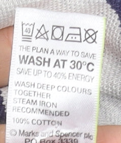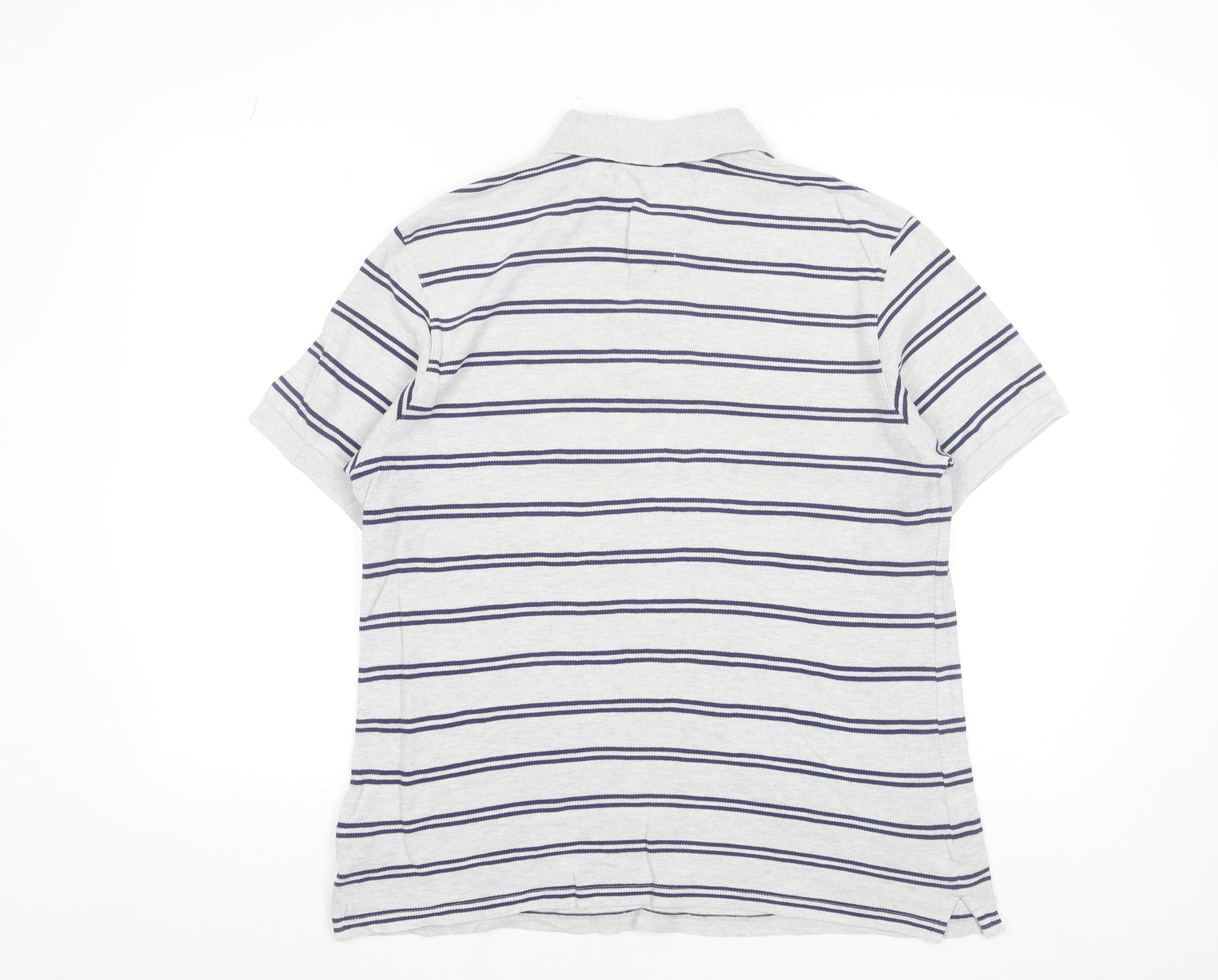 Marks and Spencer Men's Grey Striped Cotton Polo Shirt Medium