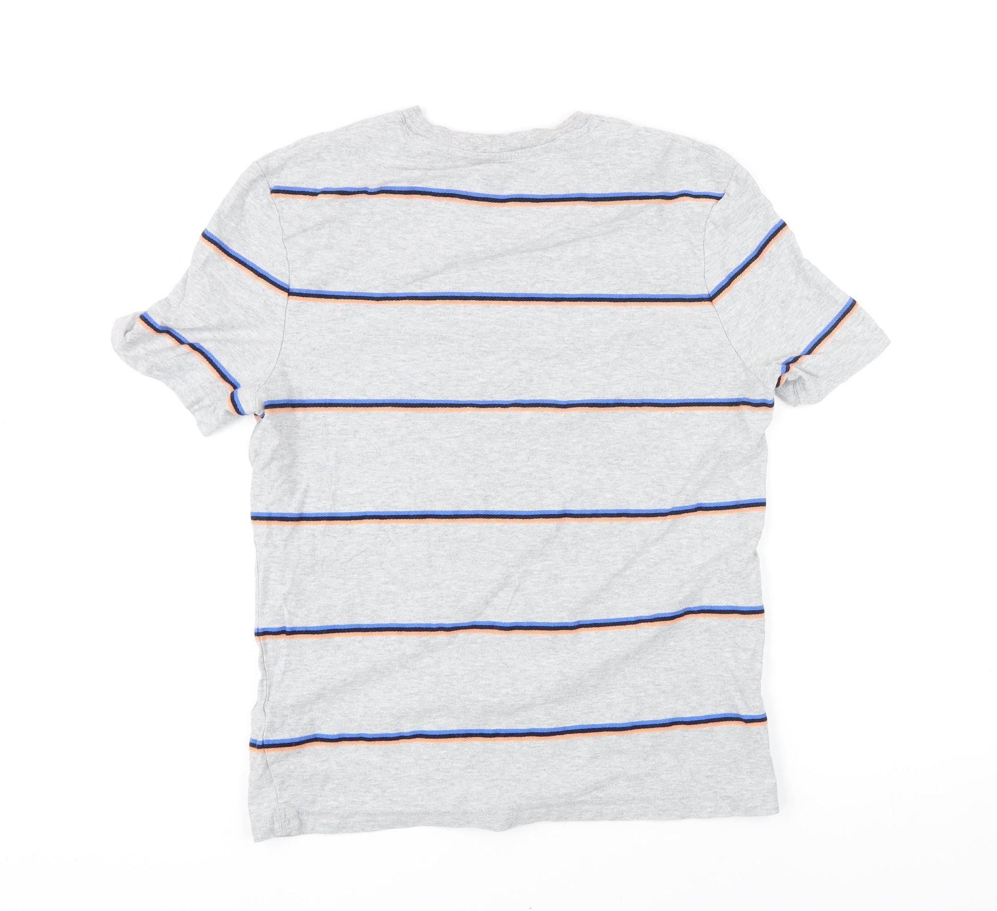 Marks and Spencer Mens Grey Striped Cotton T-Shirt Size S Round Neck