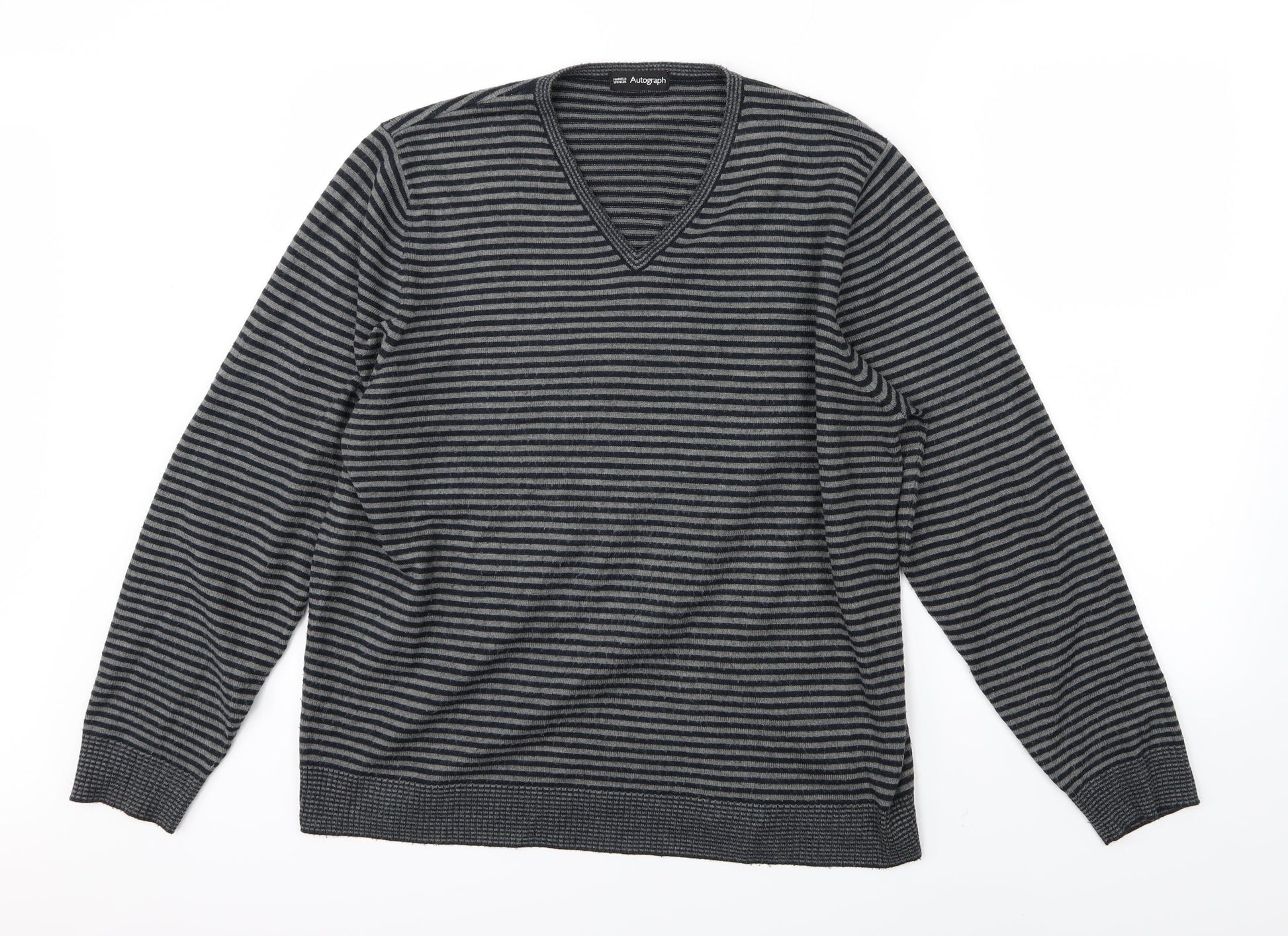 Marks and Spencer Mens Grey Striped Knit Pullover Jumper Size L