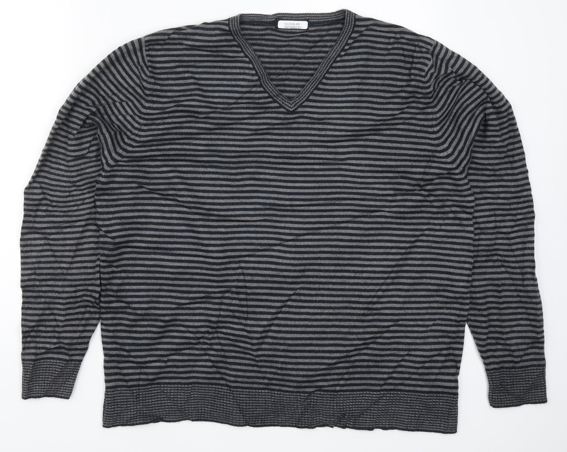 Marks and Spencer Mens Grey Striped Knit Pullover Jumper Size L