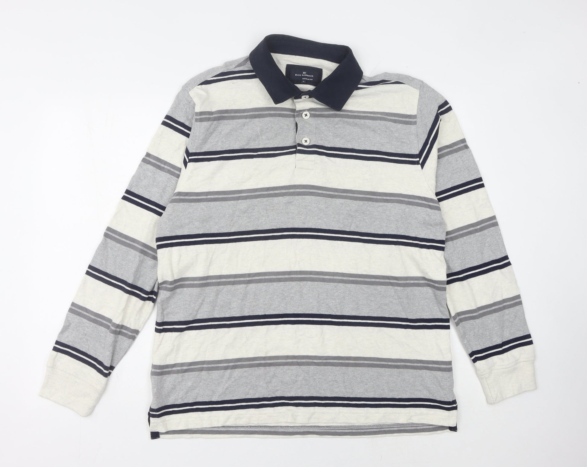 Marks and Spencer Men's Grey Striped Long Sleeve Polo Shirt M