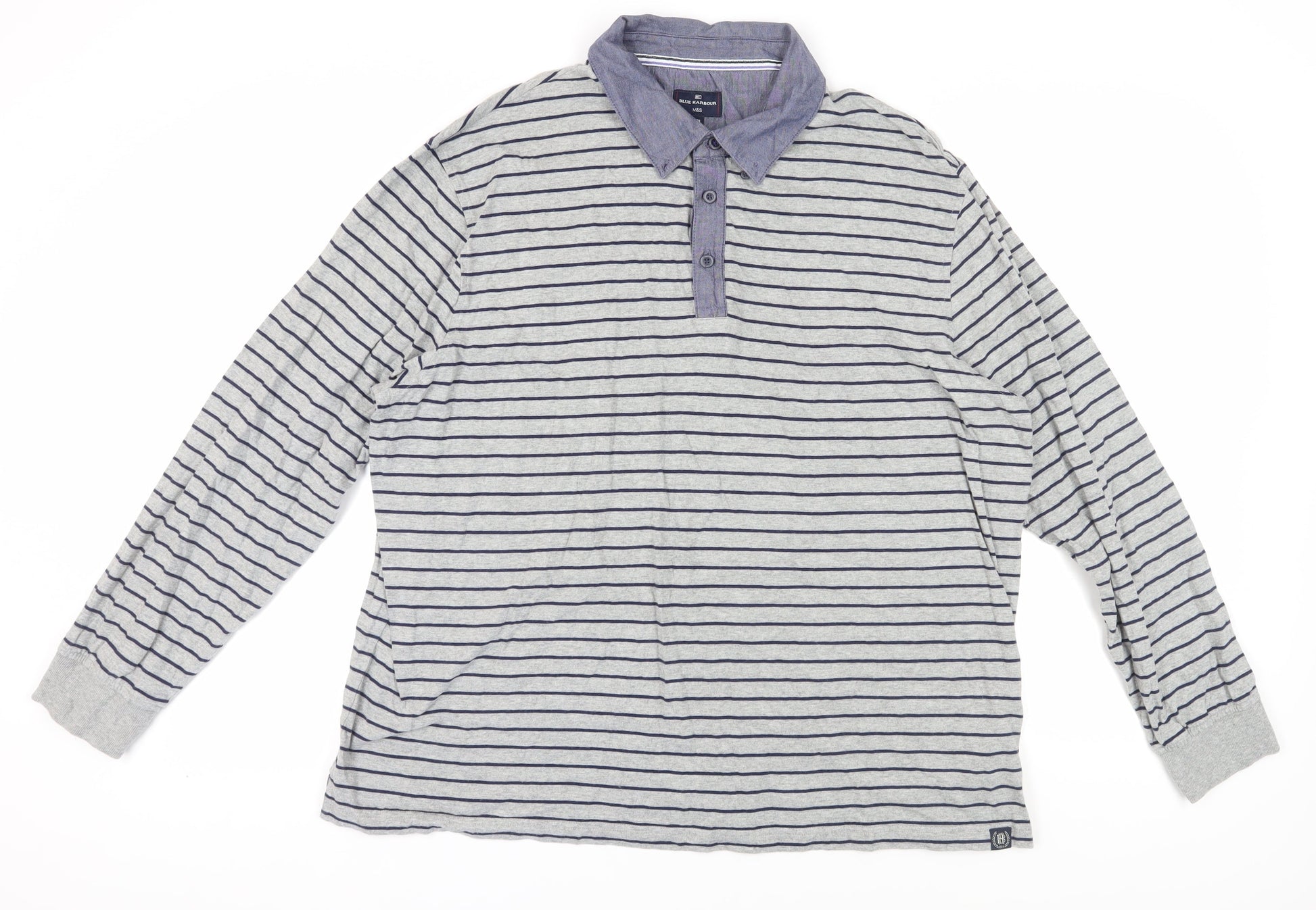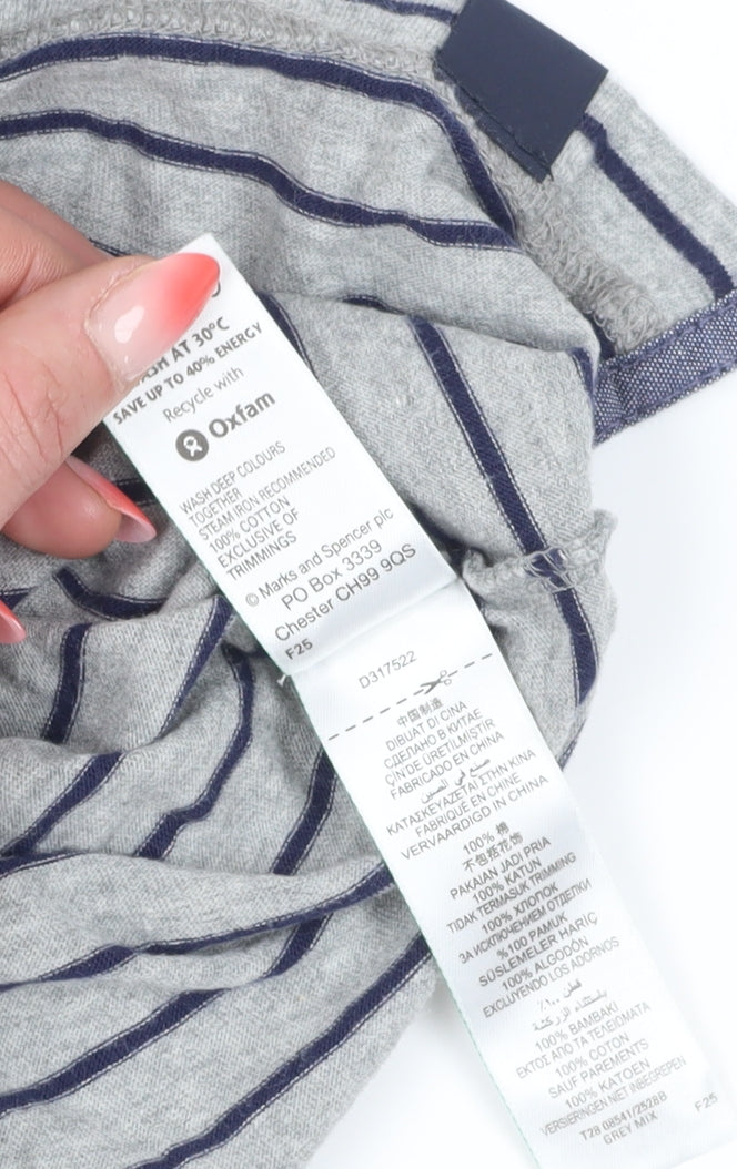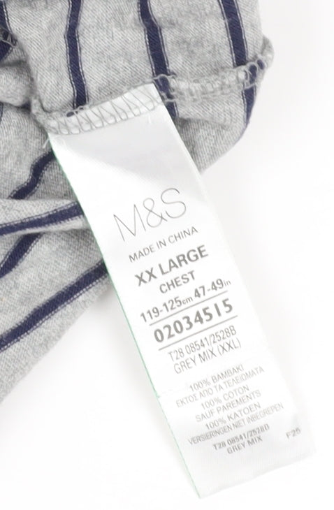 Marks and Spencer Men's Grey Striped Polo 2XL