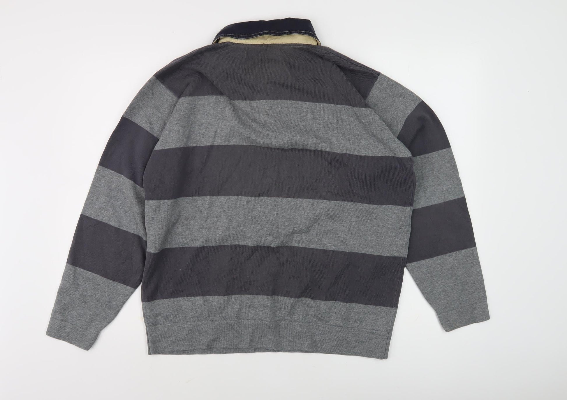 Marks and Spencer Men's Grey Striped Polo, L, Long Sleeve