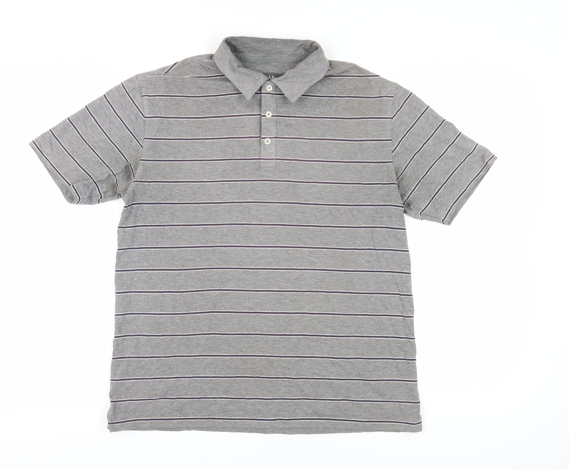 Marks and Spencer Men's Grey Striped Polo Shirt M