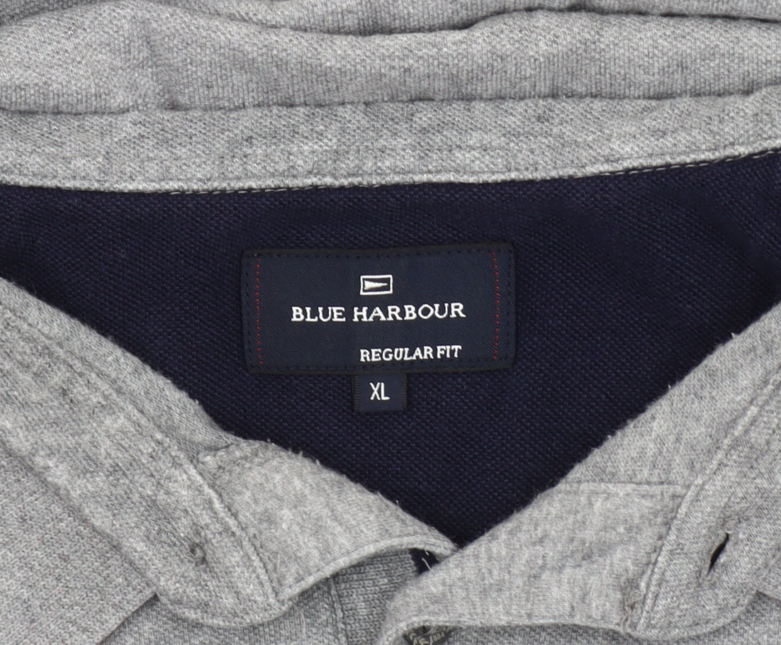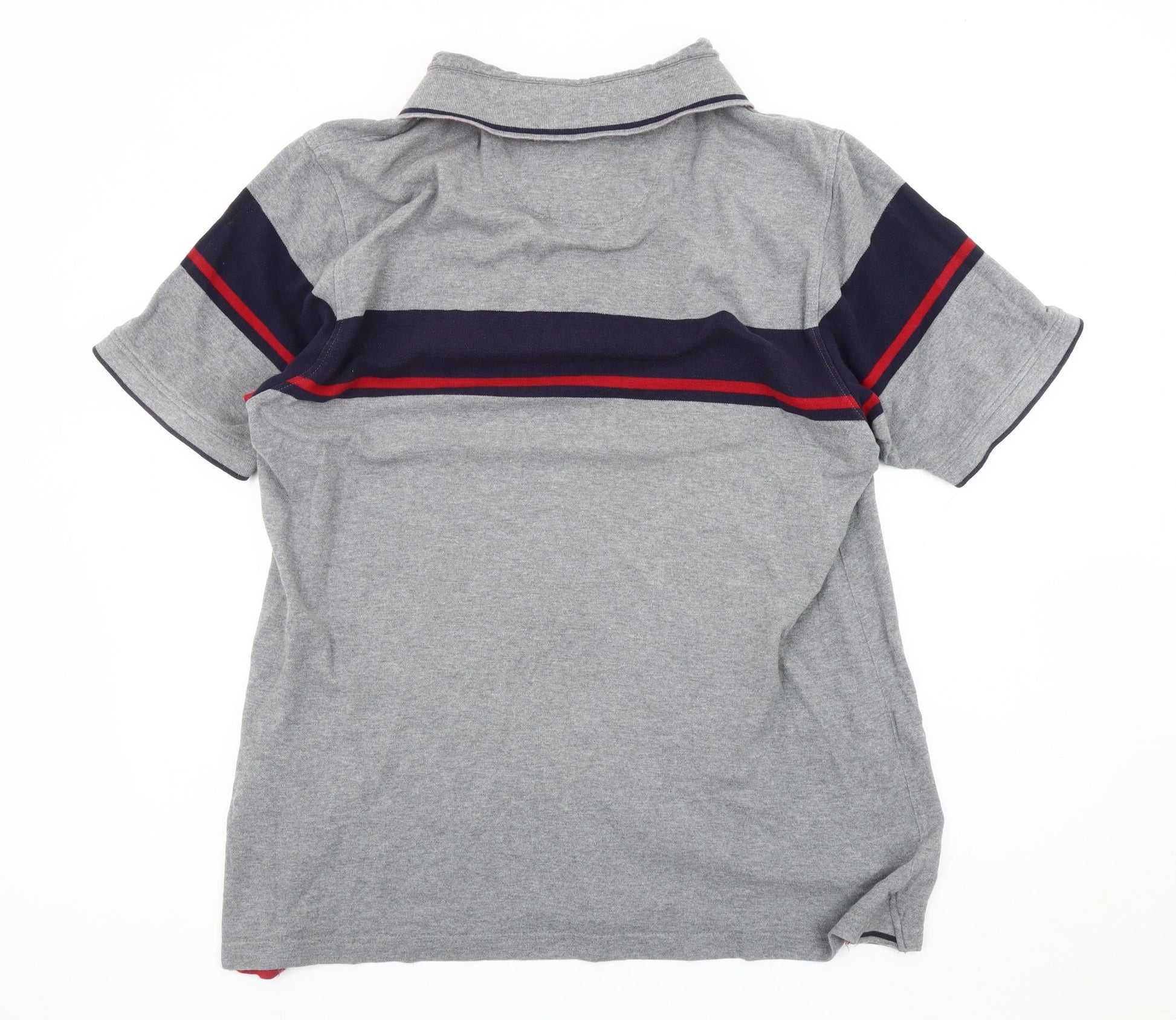 Marks and Spencer Men's Grey Striped Polo Shirt XL