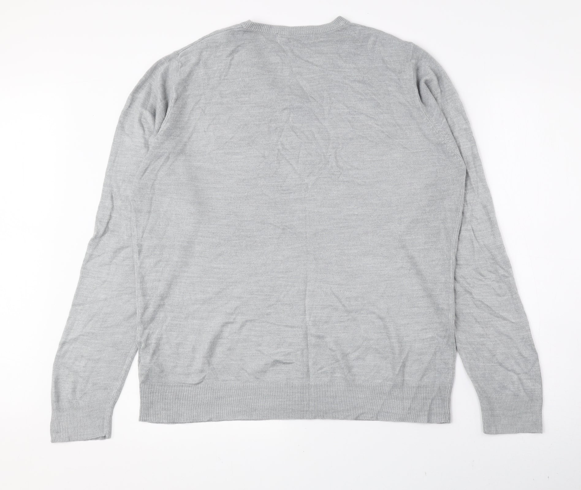 Marks and Spencer Mens Grey V-Neck Acrylic Pullover Jumper Size L