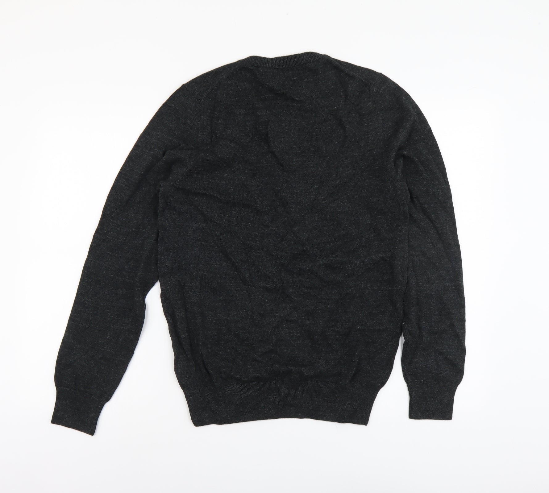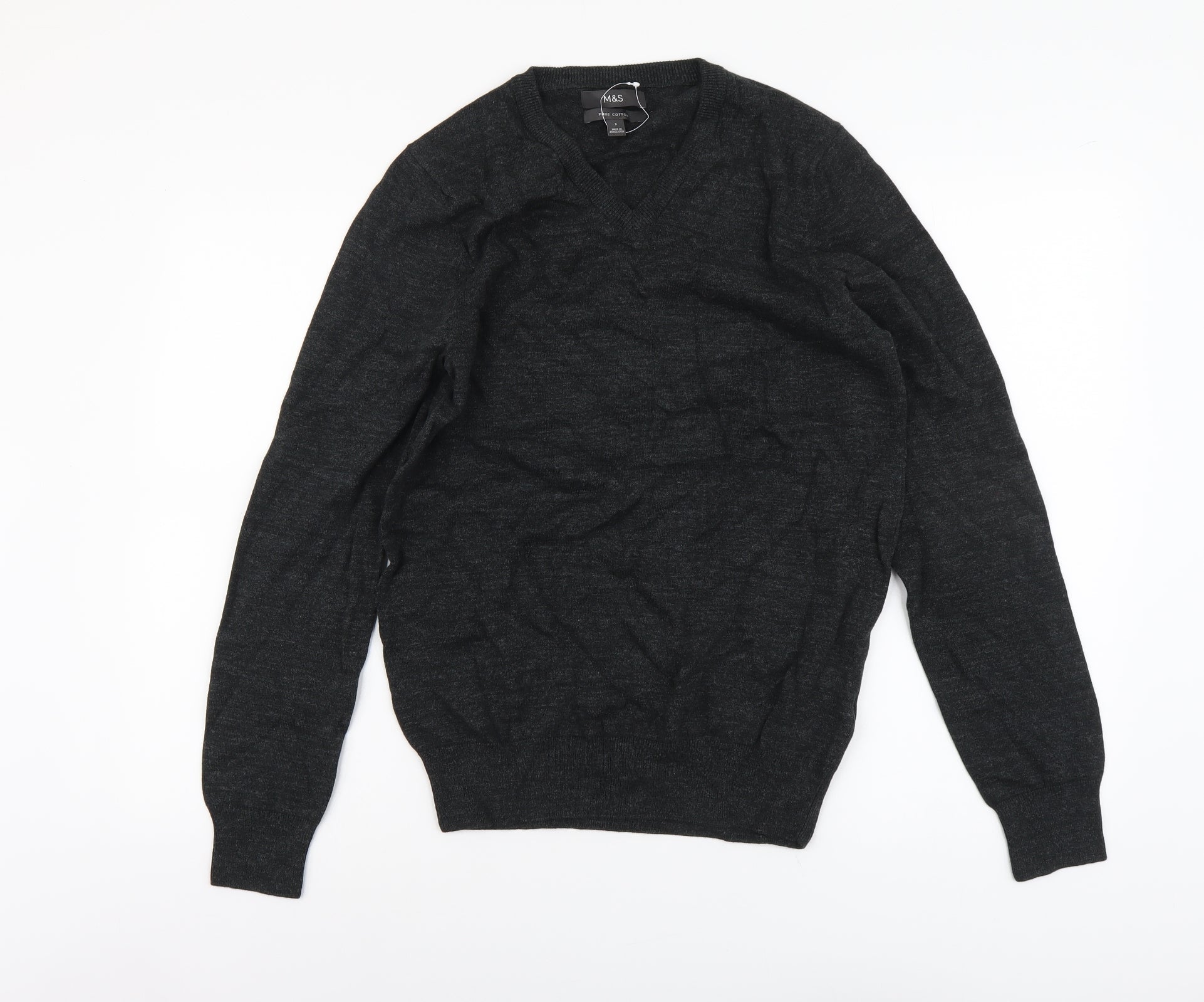 Marks and Spencer Mens Grey V-Neck Cotton Pullover Jumper Size S Long Sleeve