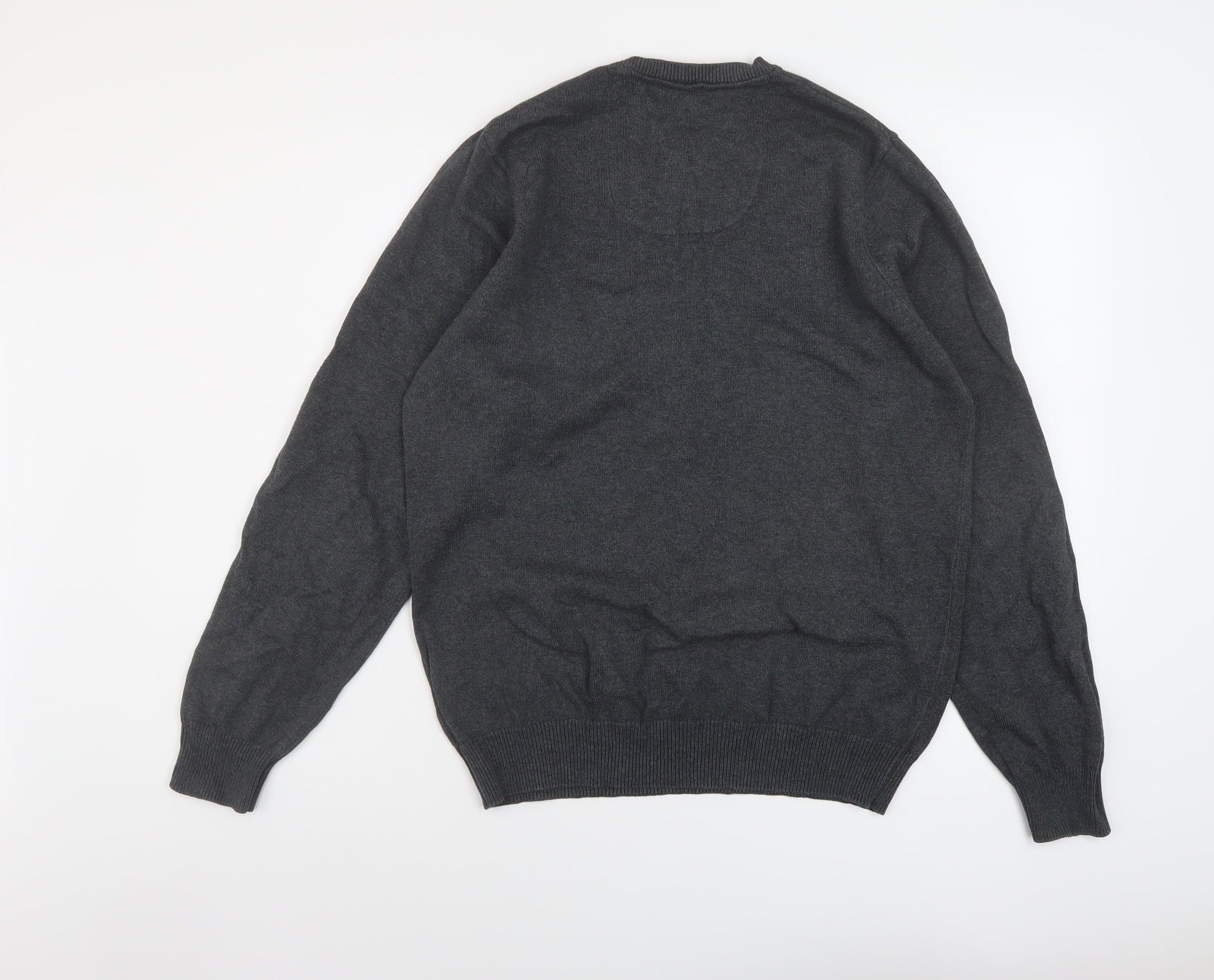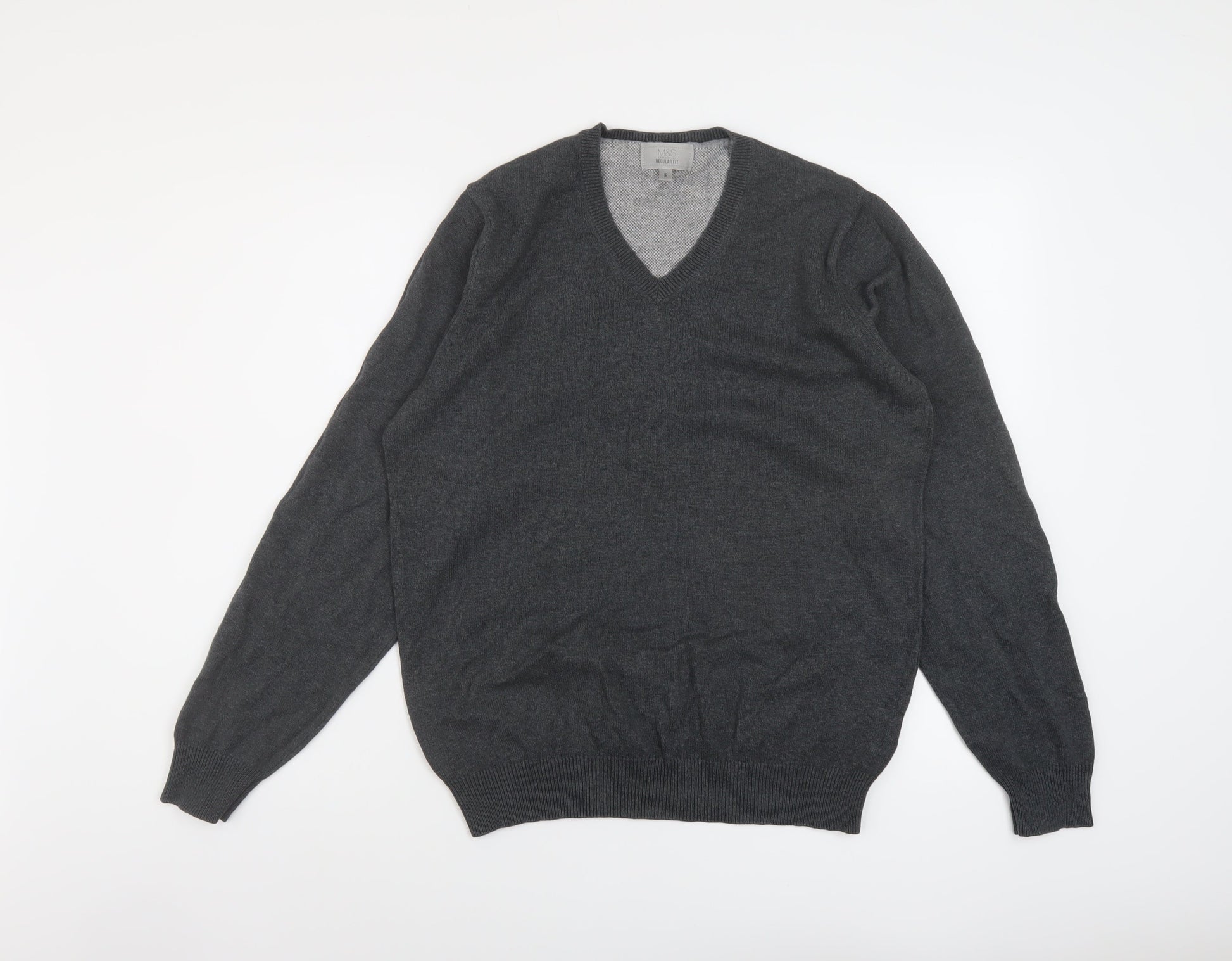 Marks and Spencer Mens Grey V-Neck Cotton Pullover Jumper Size S Long Sleeve