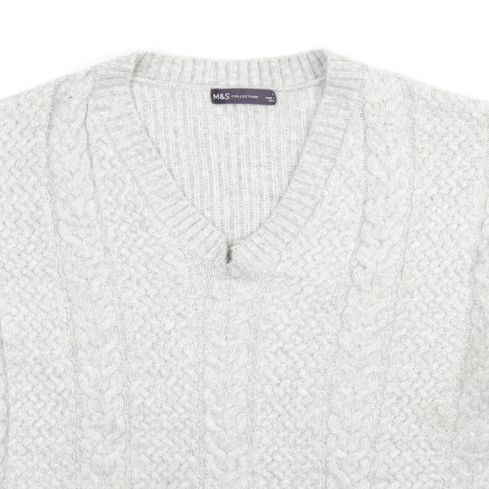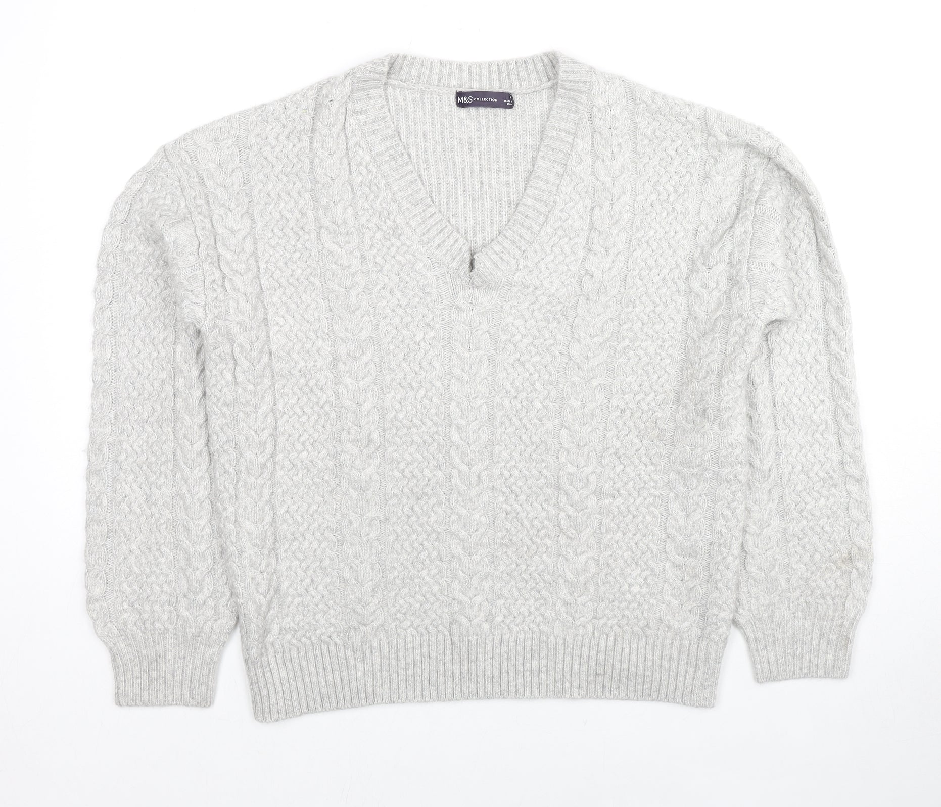 Marks and Spencer Mens Grey V-Neck Polyester Pullover Jumper Size M Long Sleeve