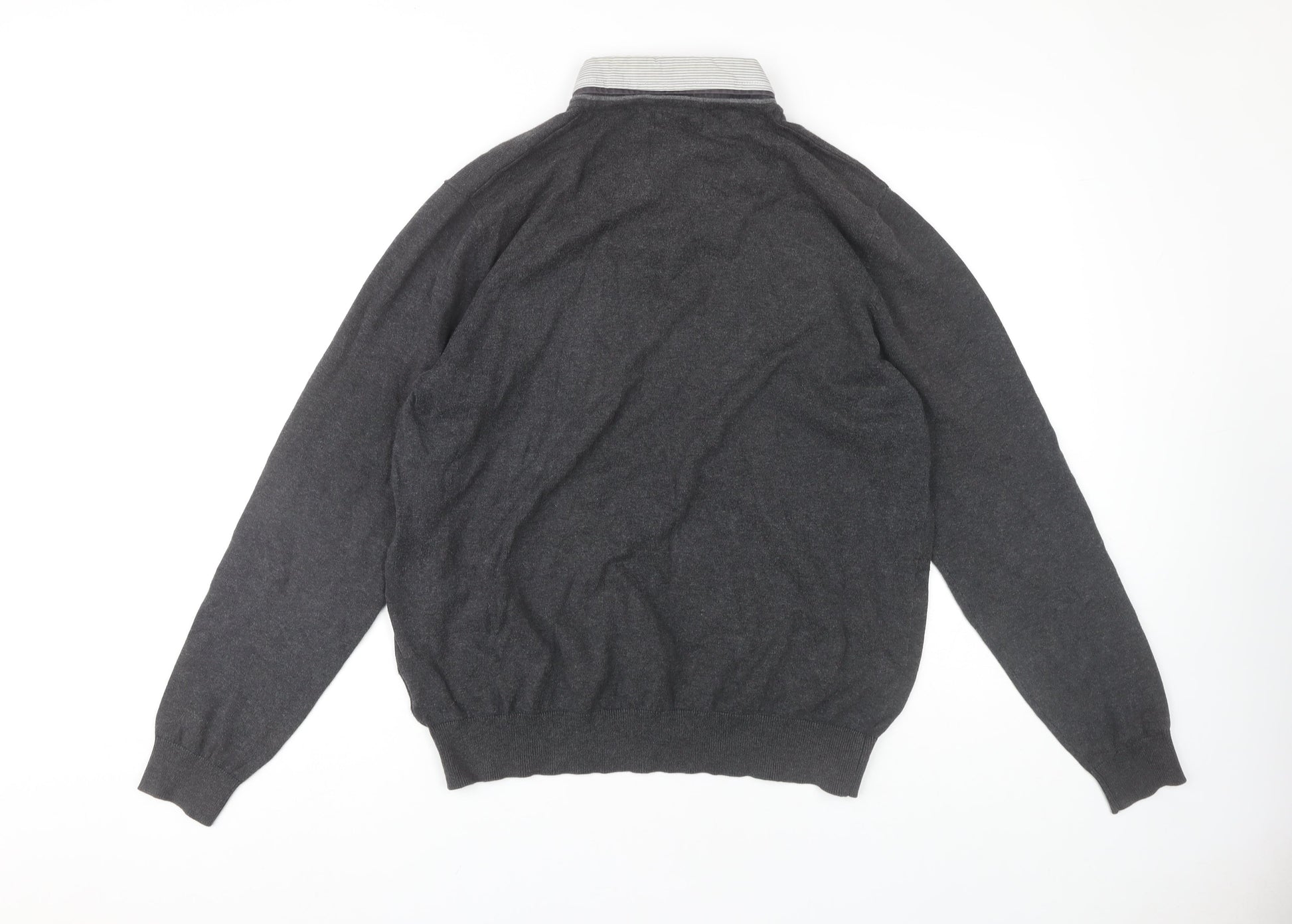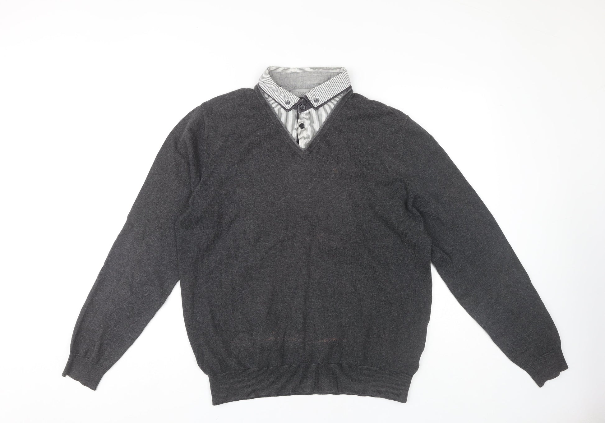 Marks and Spencer Men's Grey V-Neck Pullover - M