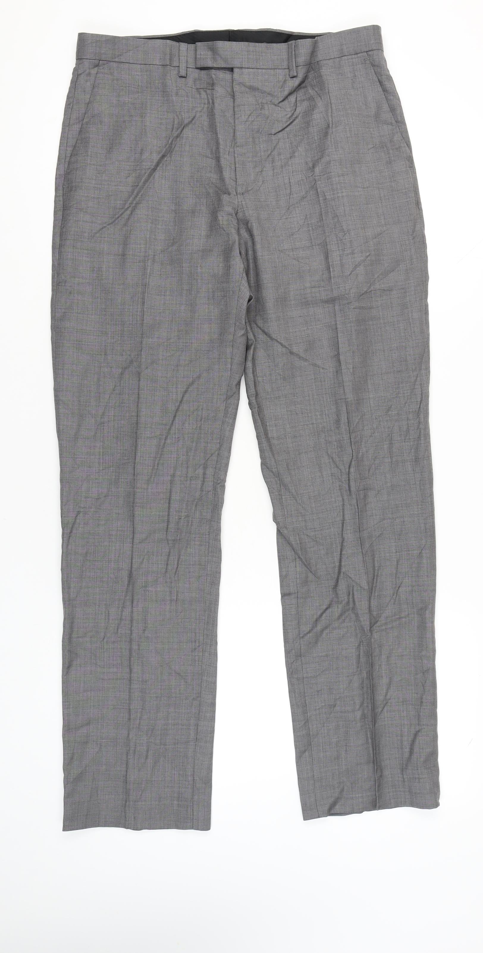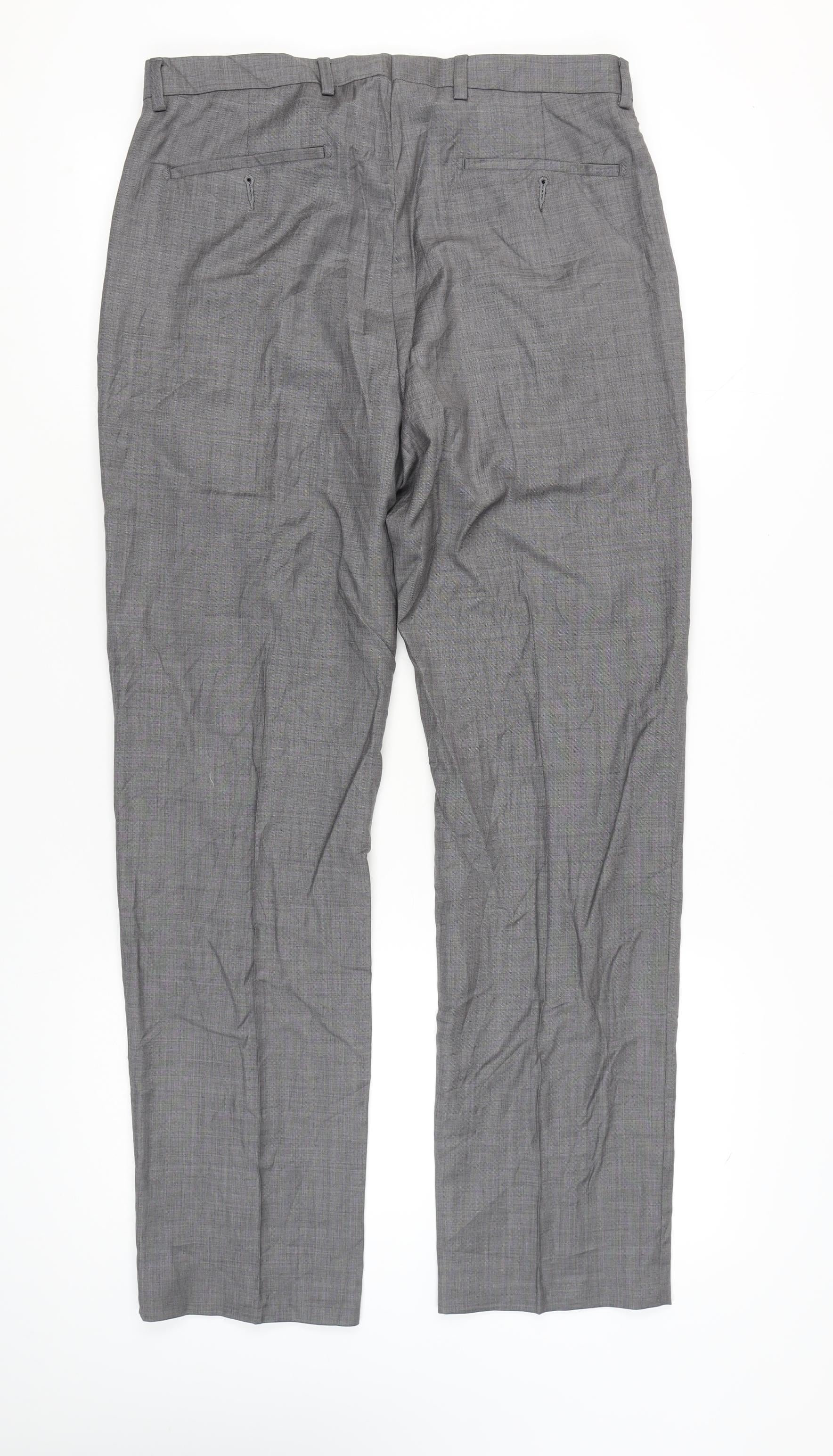 Marks and Spencer Mens Grey Wool Dress Pants 34W 33L Regular Fit