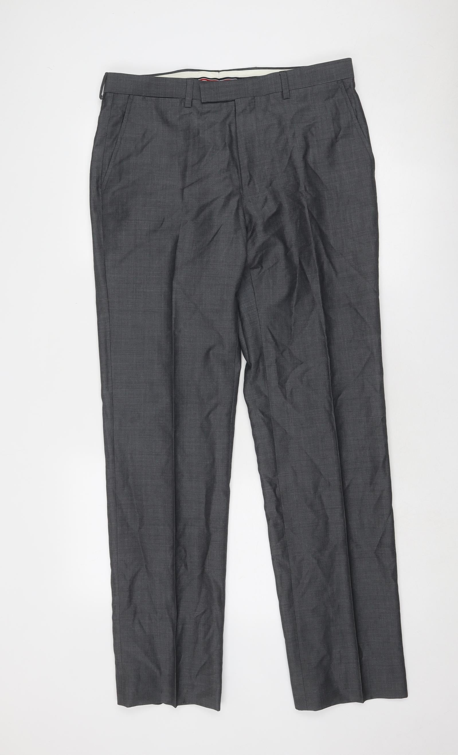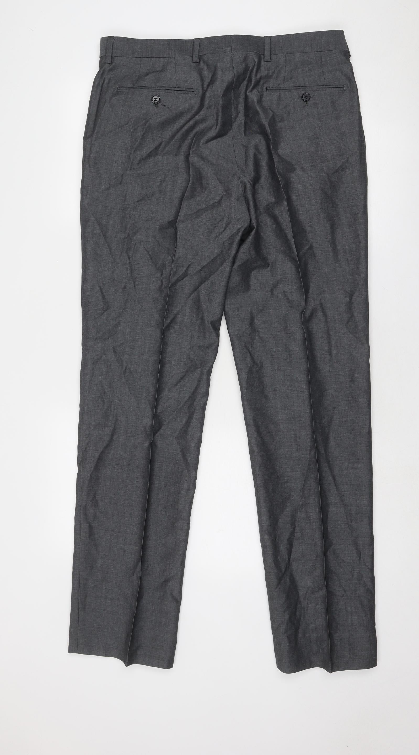 Marks and Spencer Mens Grey Wool Dress Pants Trousers Size 34 in Regular Zip