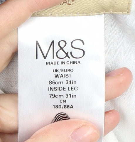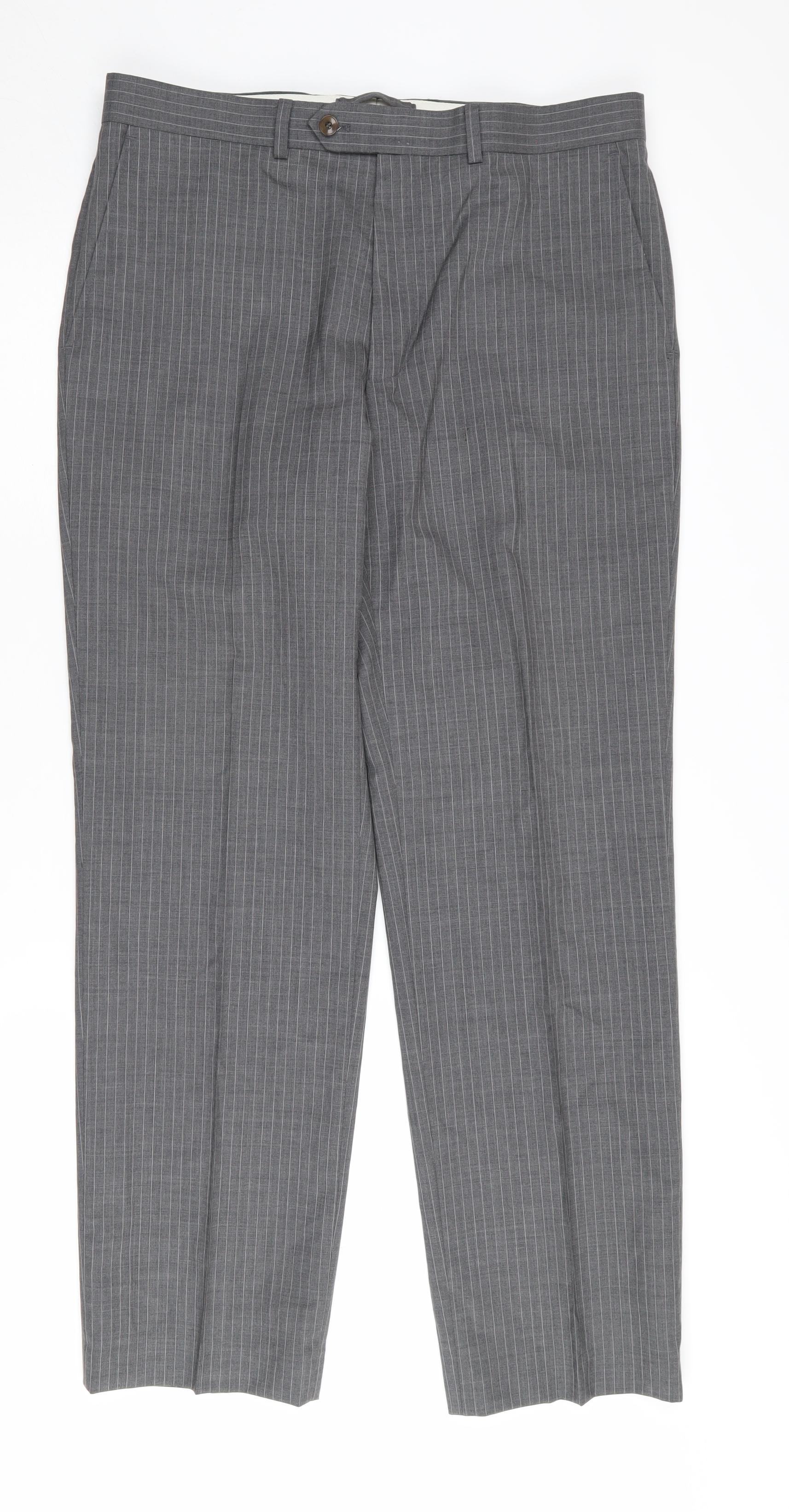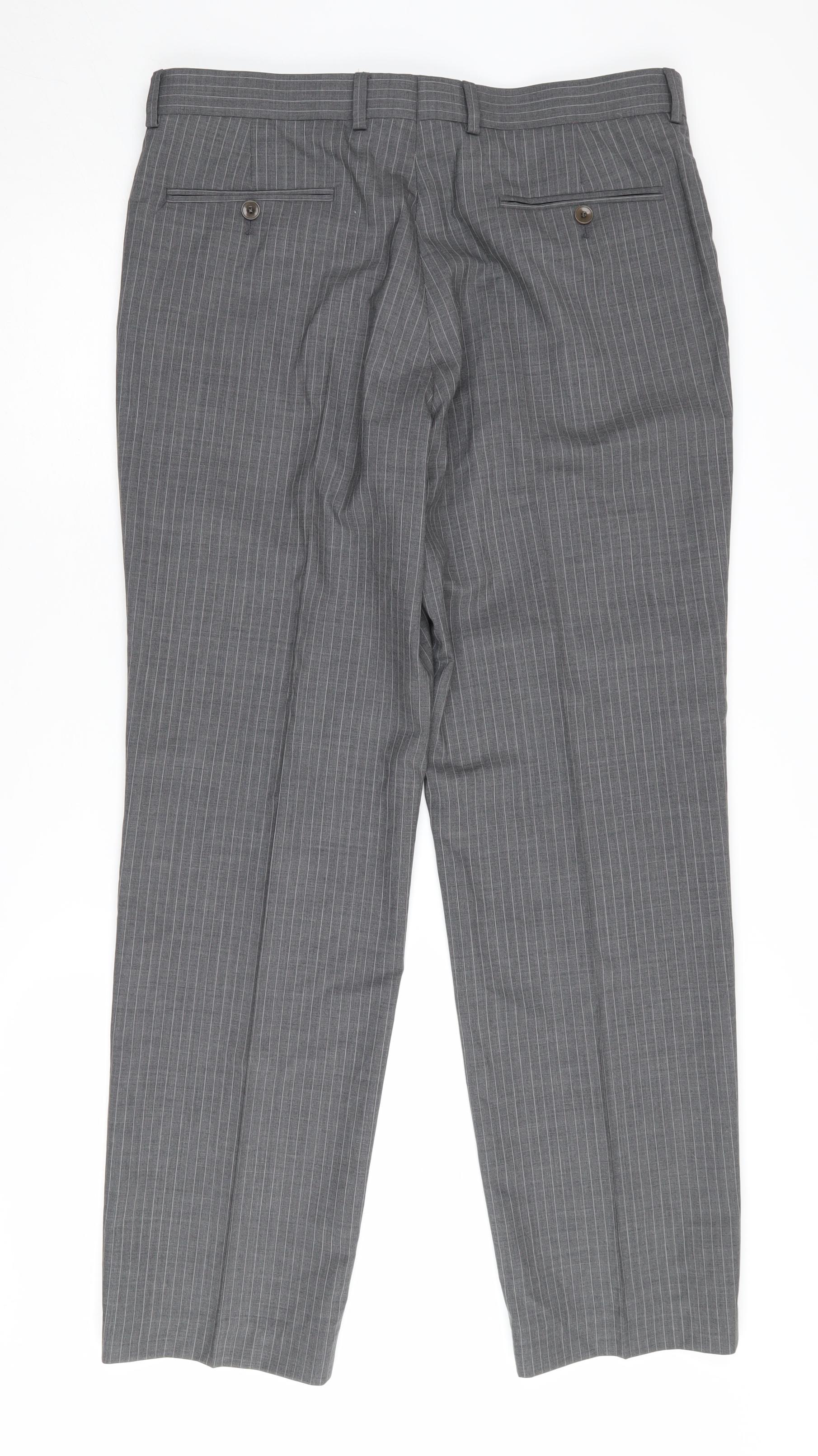 Marks and Spencer Men's Grey Wool Trousers, 34 Waist, Striped, Business