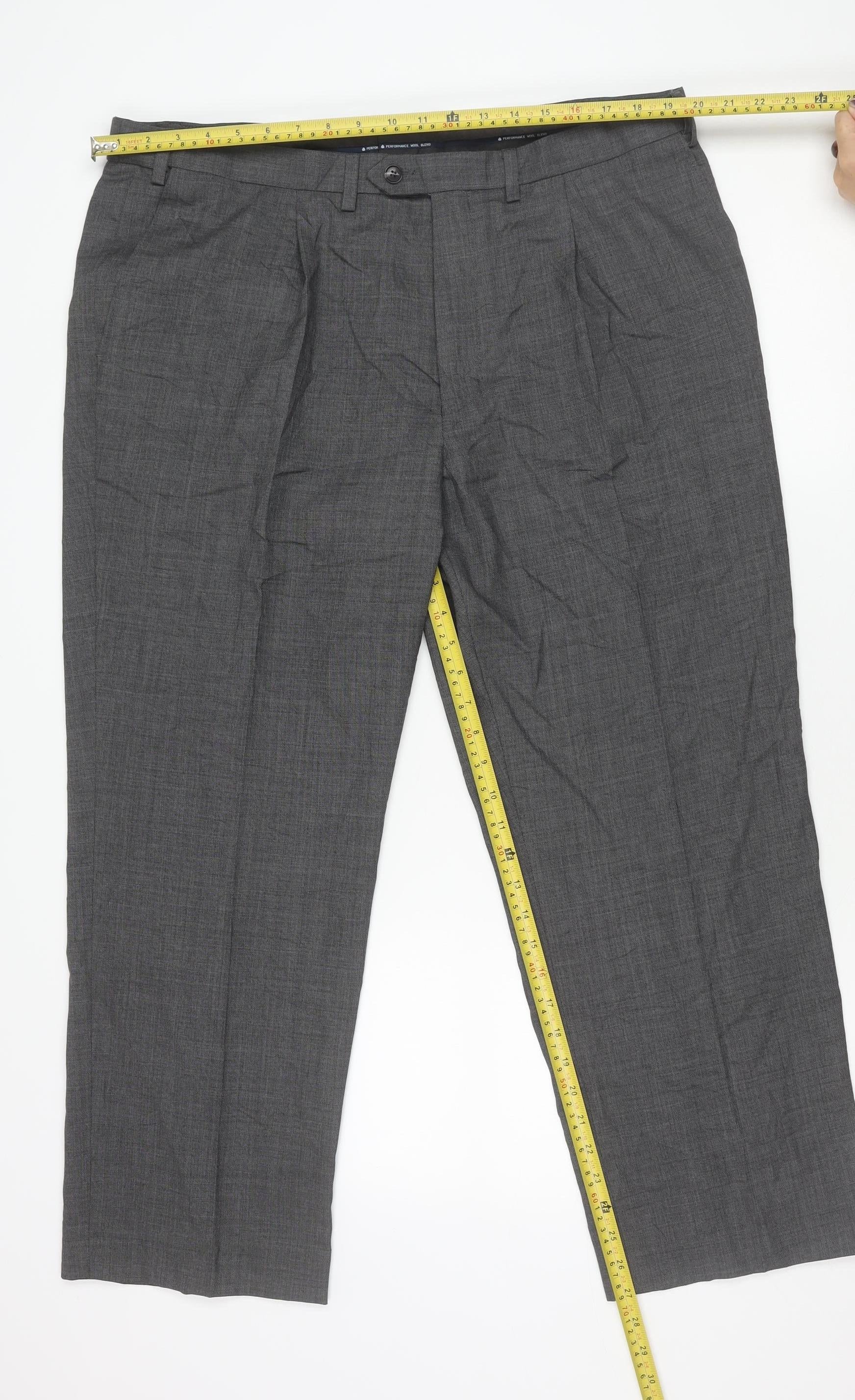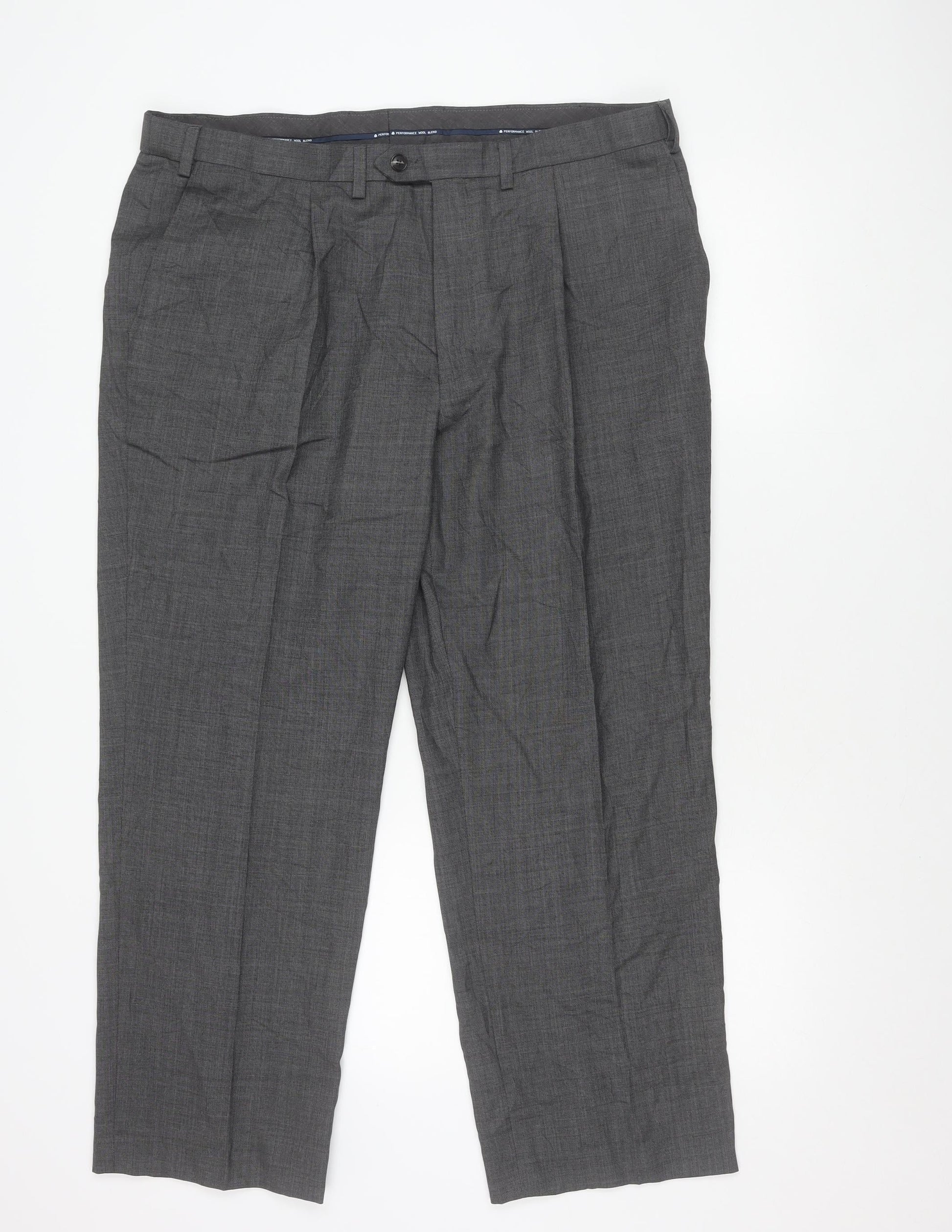 Marks and Spencer Men's Grey XL Regular Fit Wool Blend Dress Pants