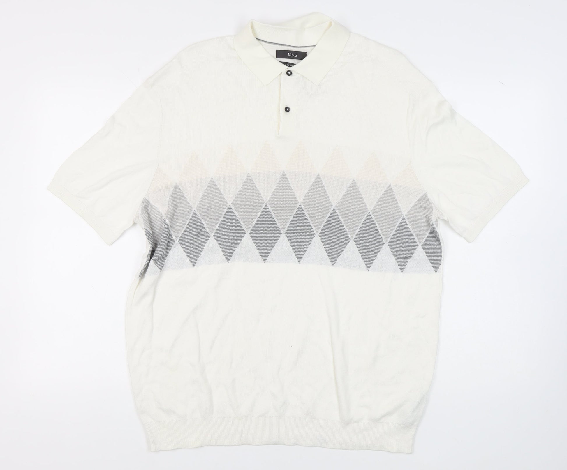 Marks and Spencer Men's Ivory Argyle Polo 2XL