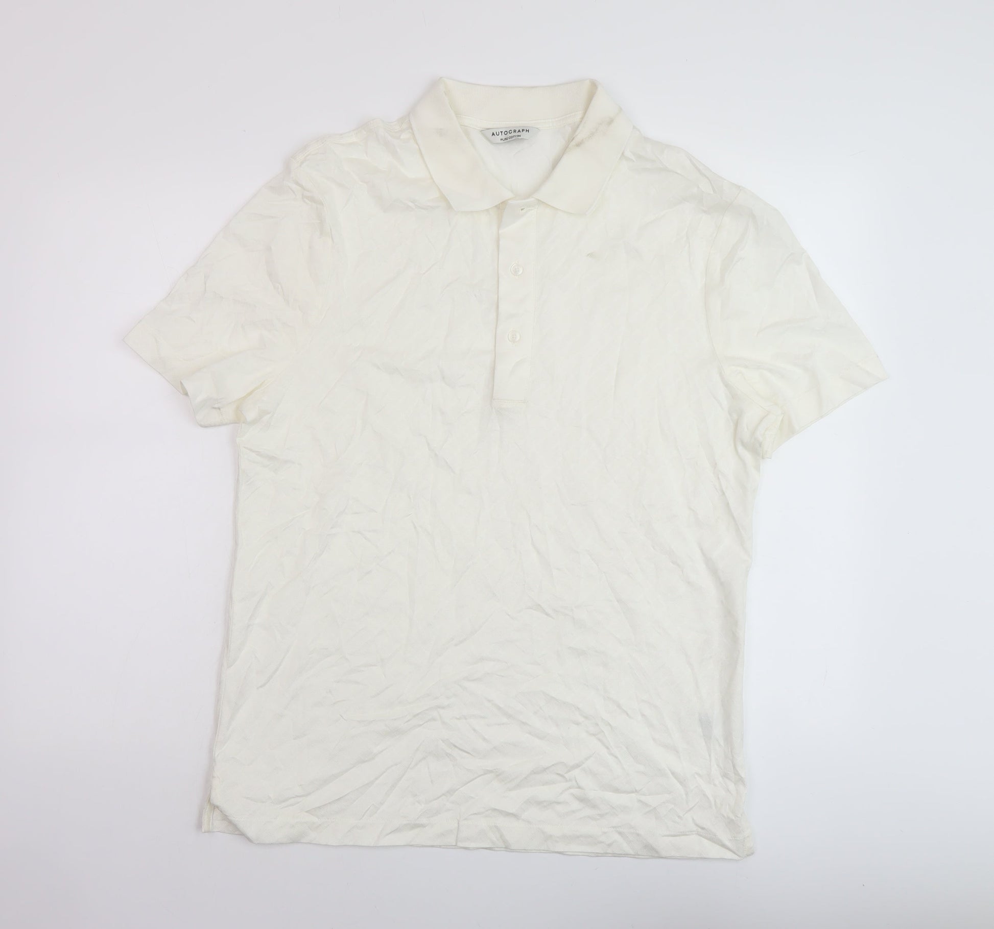 Marks and Spencer Mens Ivory Cotton Polo Size L Collared Pullover
