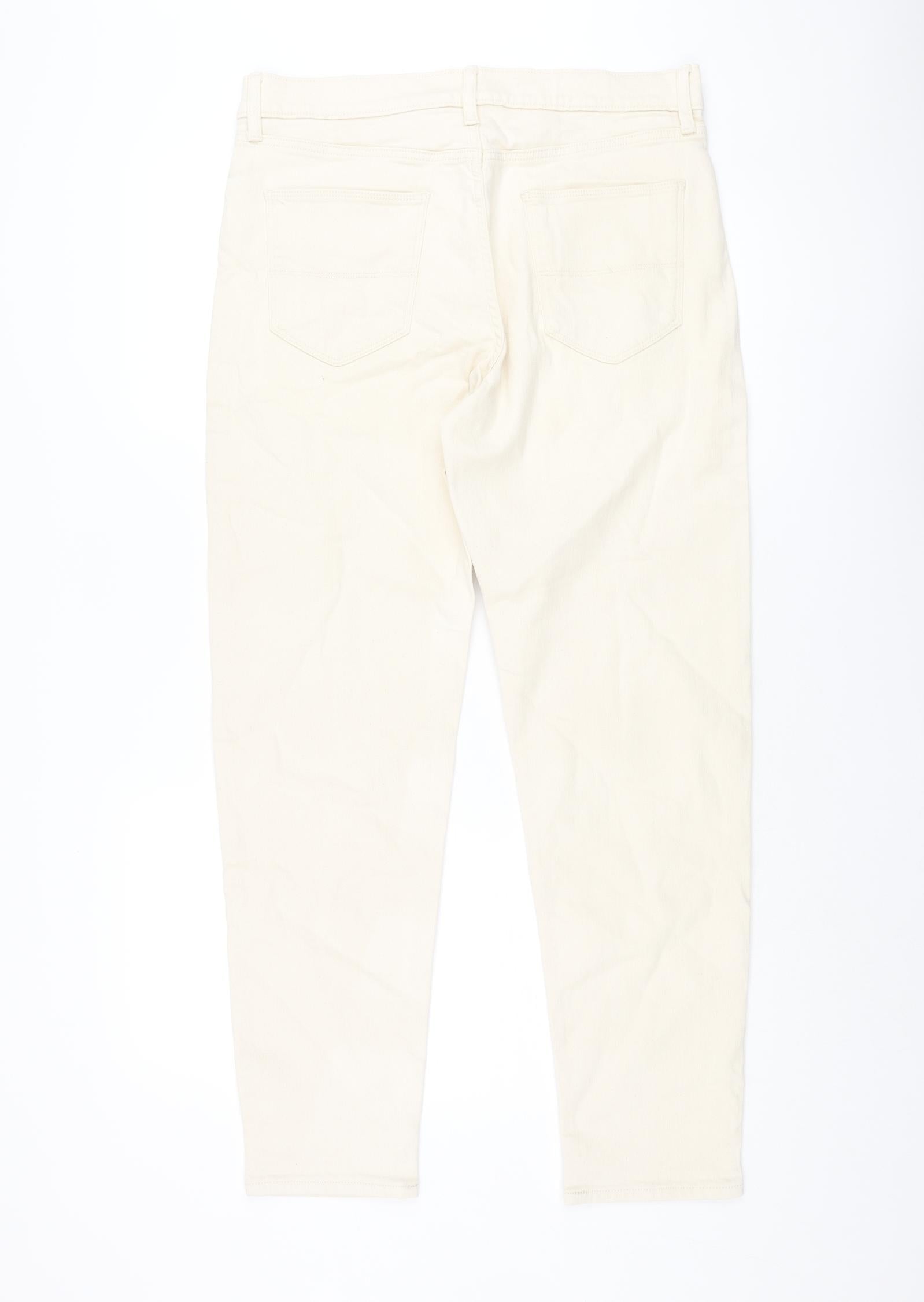 Marks and Spencer Mens Ivory Cotton Tapered Jeans Size 32 in L31 in Regular Zip