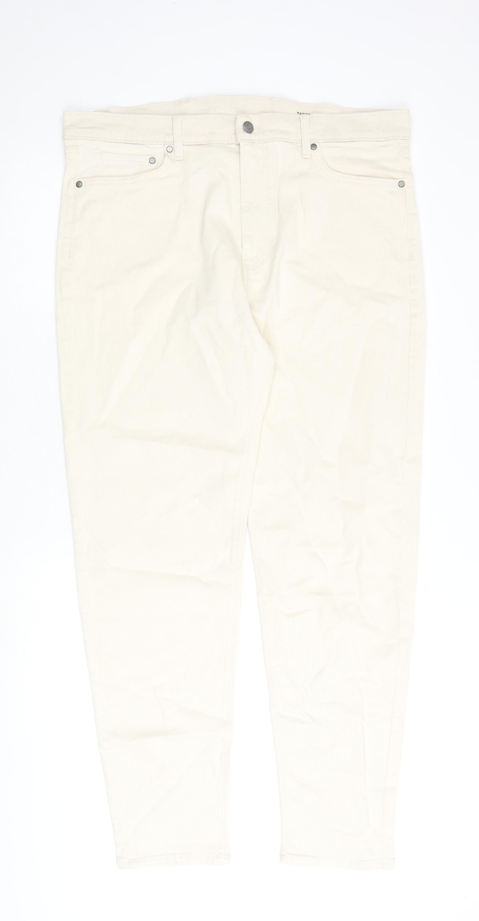 Marks and Spencer Mens Ivory Cotton Tapered Jeans Size 38 in L33 in Regular Zip