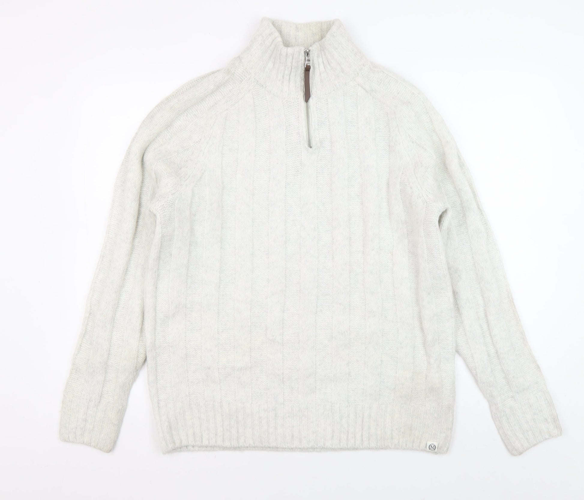 Marks and Spencer Men's Ivory Full Zip Cable-Knit Jumper, M