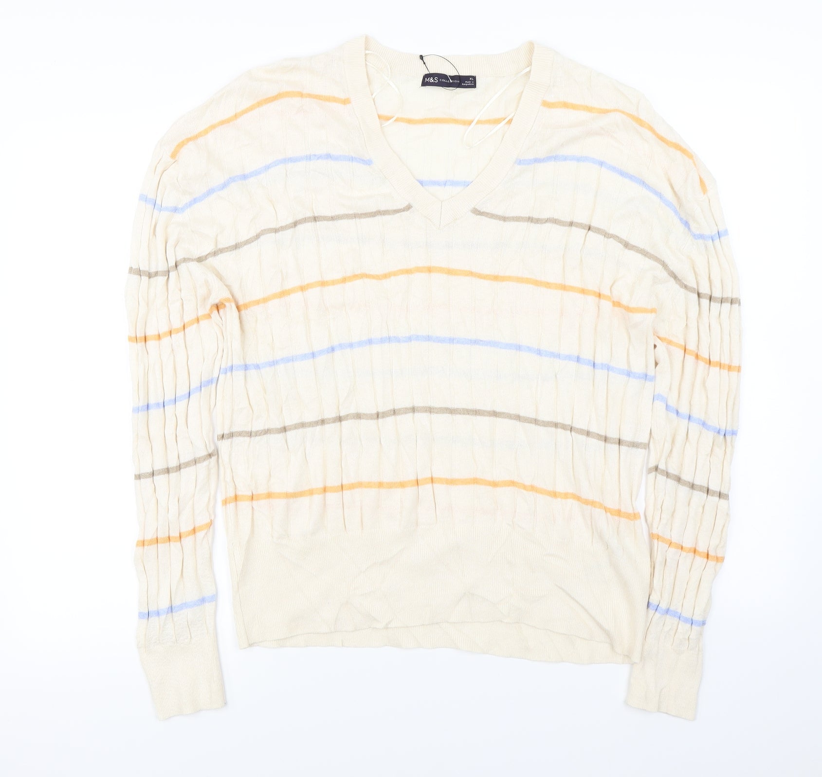 Marks and Spencer Mens Ivory Striped Pullover Jumper Size XL