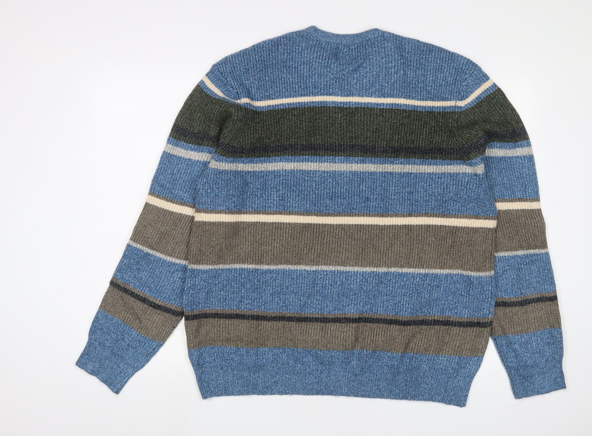 Marks and Spencer Mens Multicoloured Crew Neck Striped Acrylic Pullover Jumper Size XL Long Sleeve