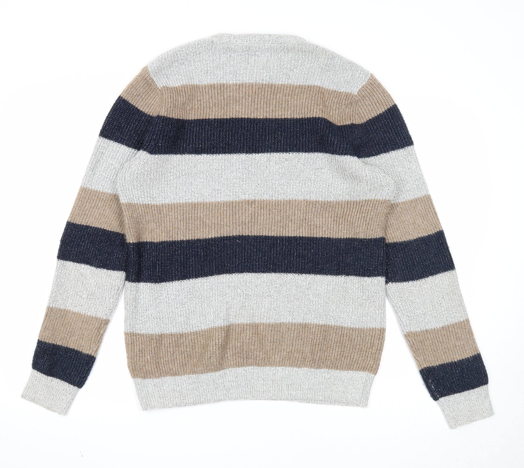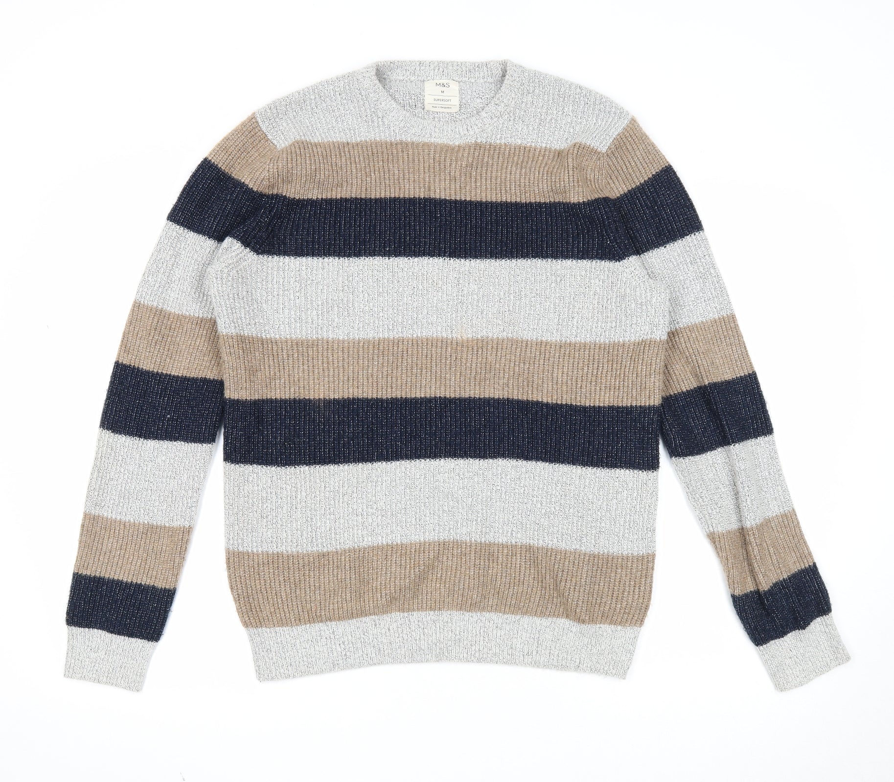 Marks and Spencer Mens Multicoloured Round Neck Striped Polyamide Pullover Jumper Size M Long Sleeve