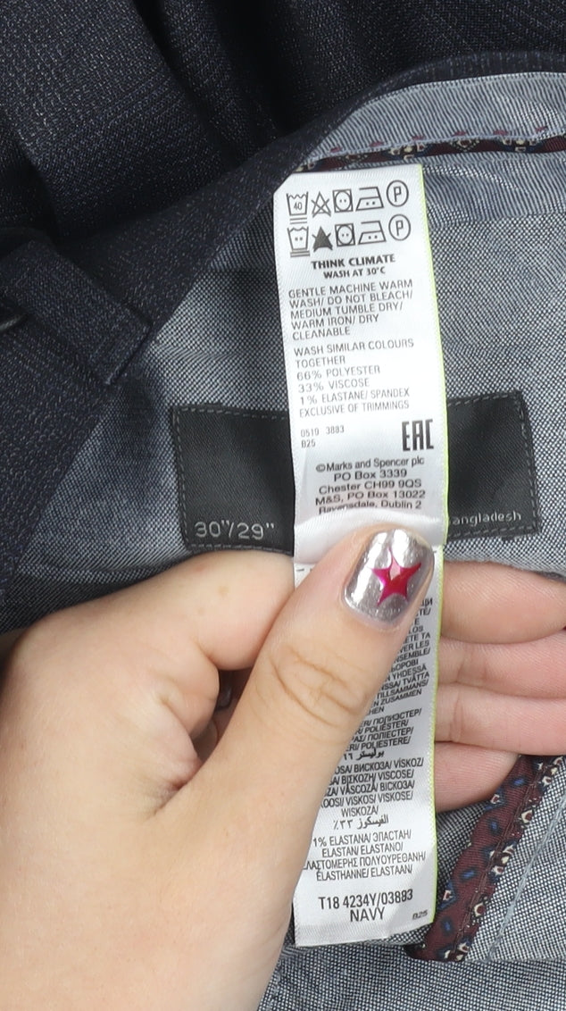 Marks and Spencer Men's Navy 30x29 Regular Fit Straight Leg Trousers