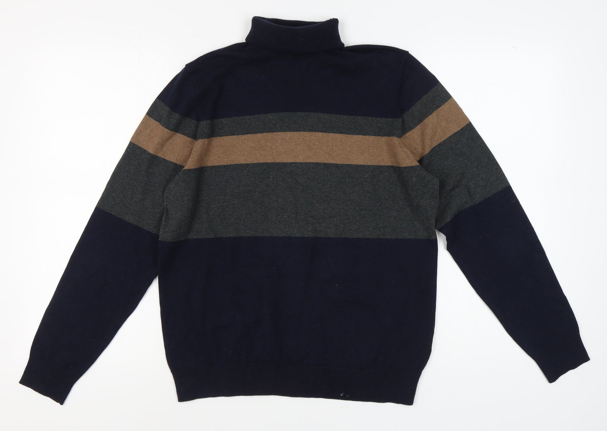 Marks and Spencer Men's Navy Brown Striped Pullover M