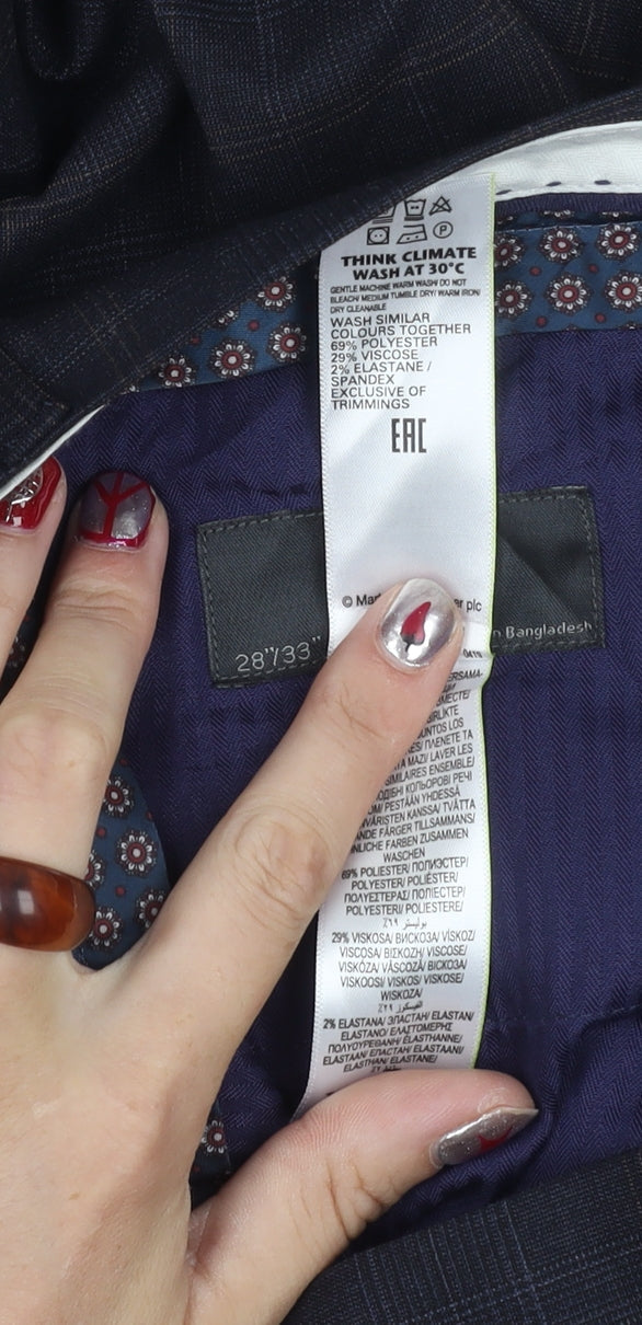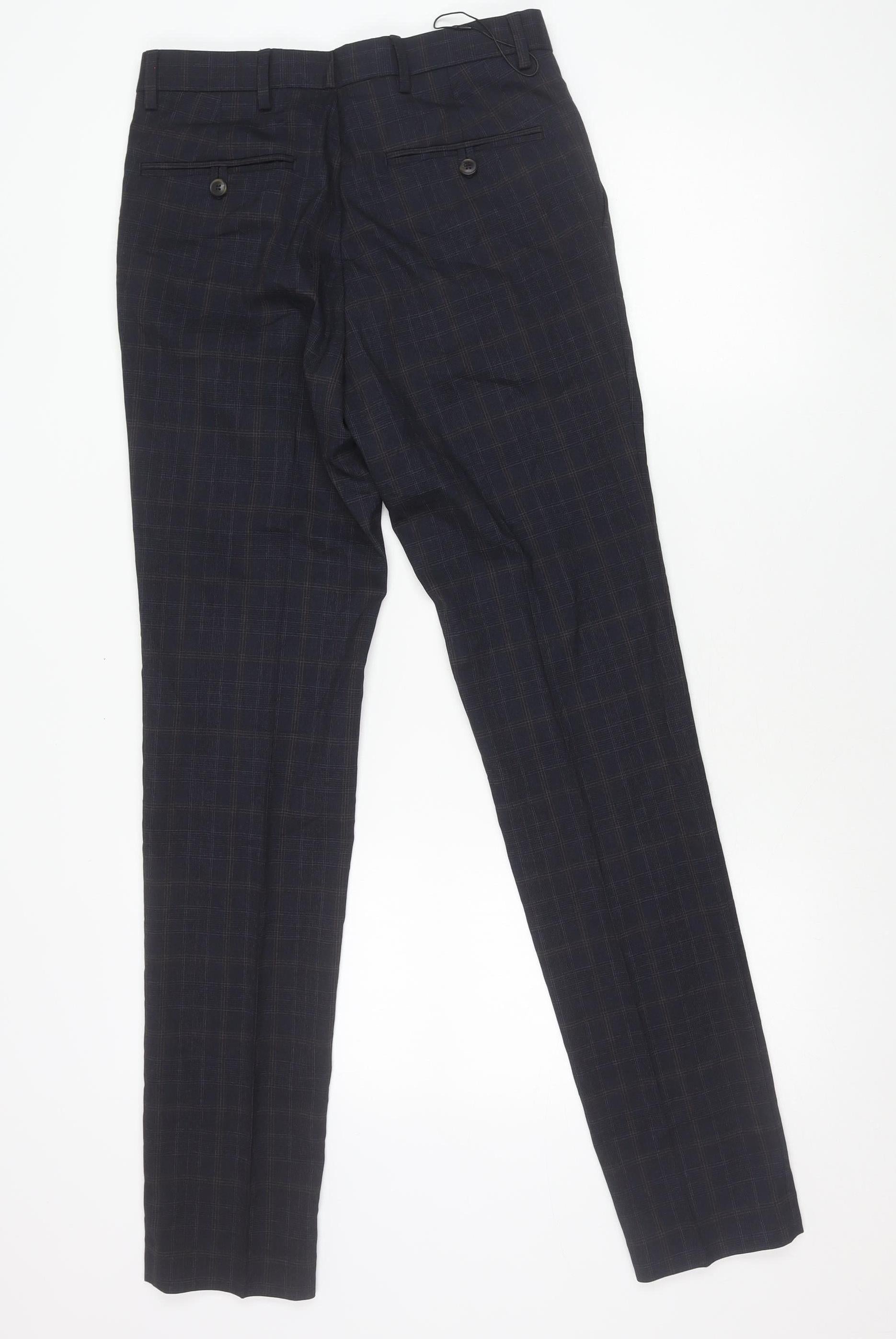 Marks and Spencer Men's Navy Check Slim Fit Trousers 28x33