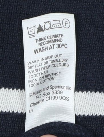Marks and Spencer Men's Navy Striped Medium Pullover Jumper