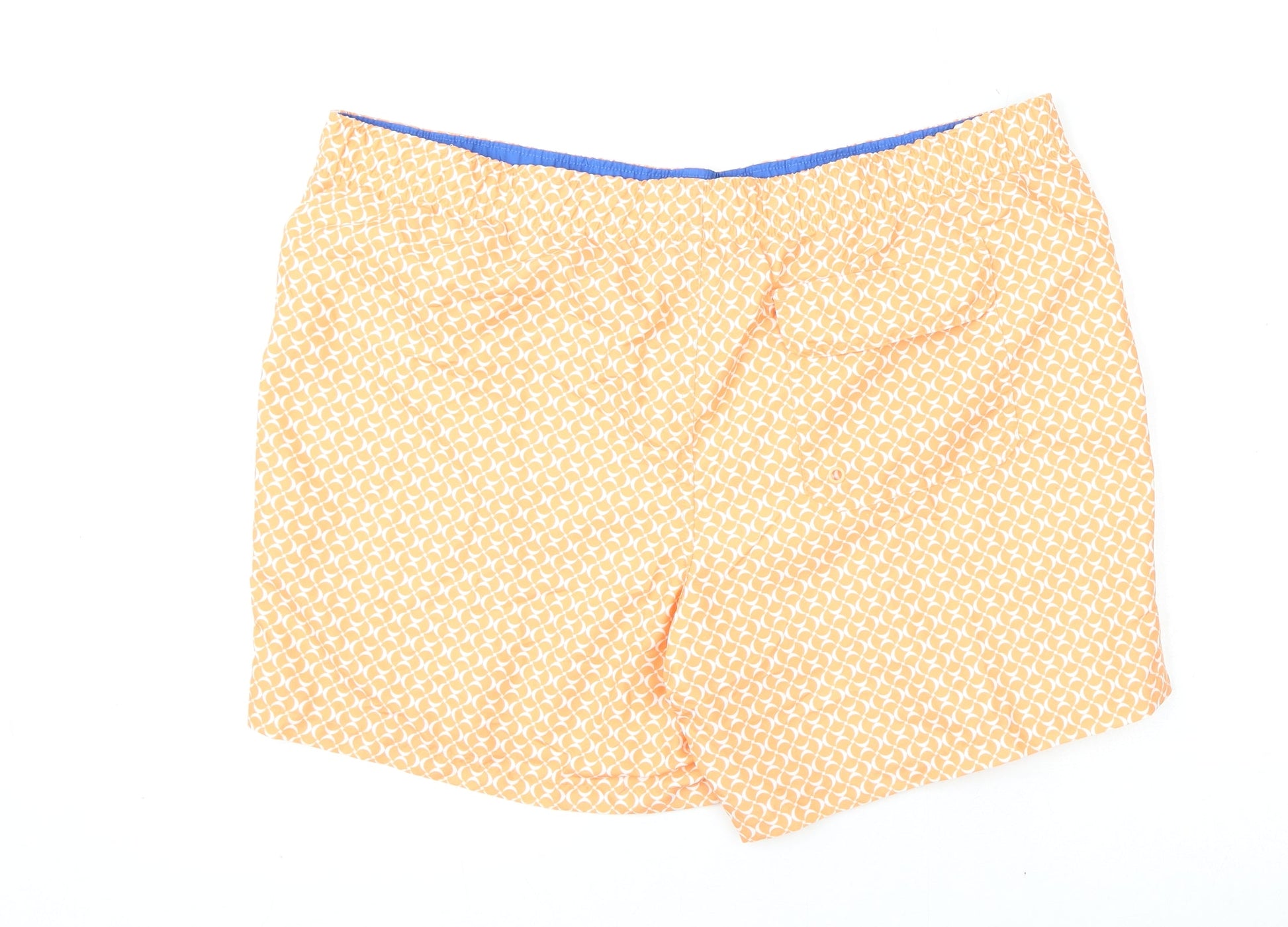Marks and Spencer Mens Orange Geometric Polyester Bermuda Shorts Size 2XL L6 in Regular Drawstring - Swim Shorts