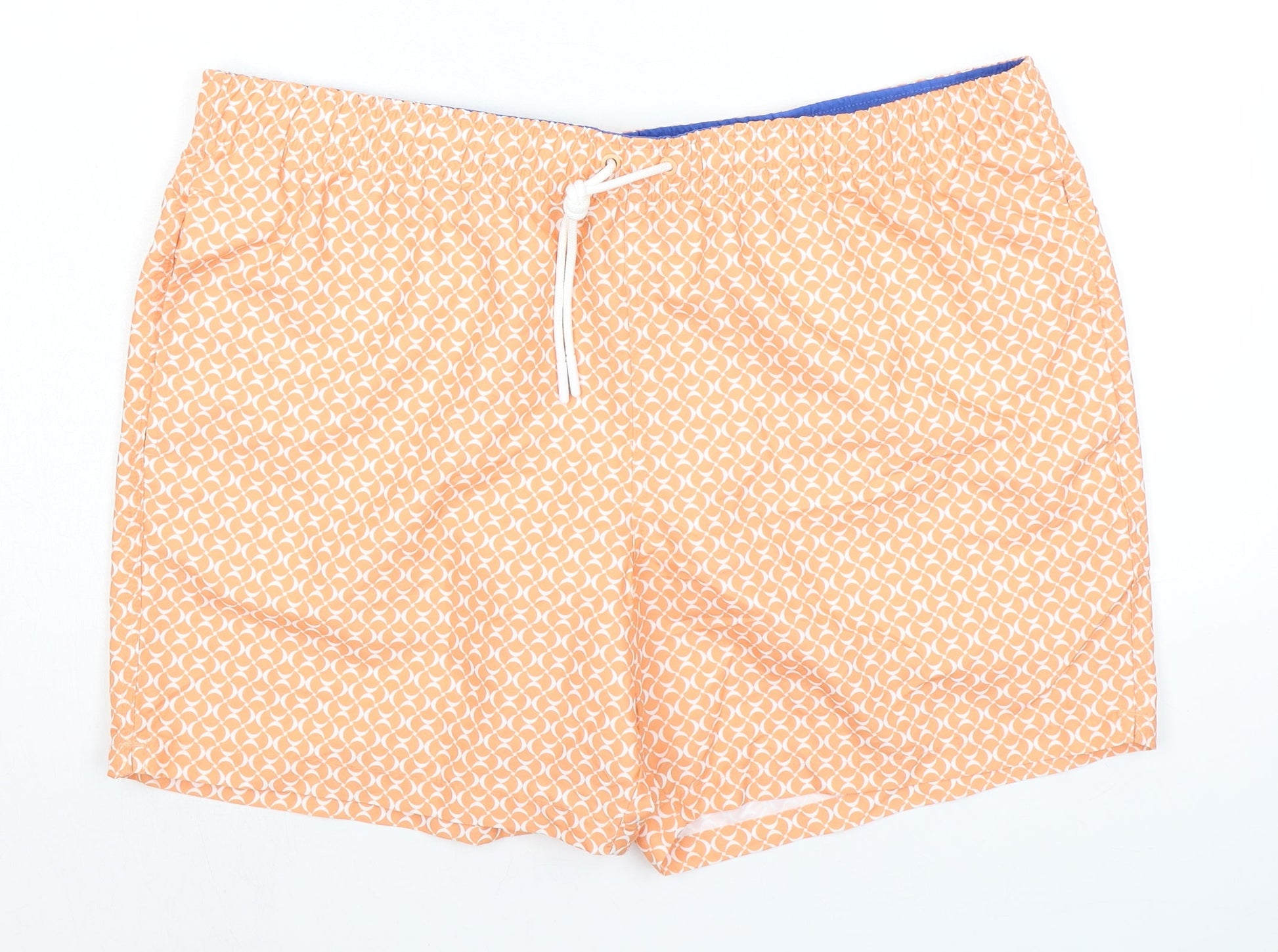Marks and Spencer Mens Orange Geometric Polyester Bermuda Shorts Size 2XL Regular Drawstring - Inside Leg 5in