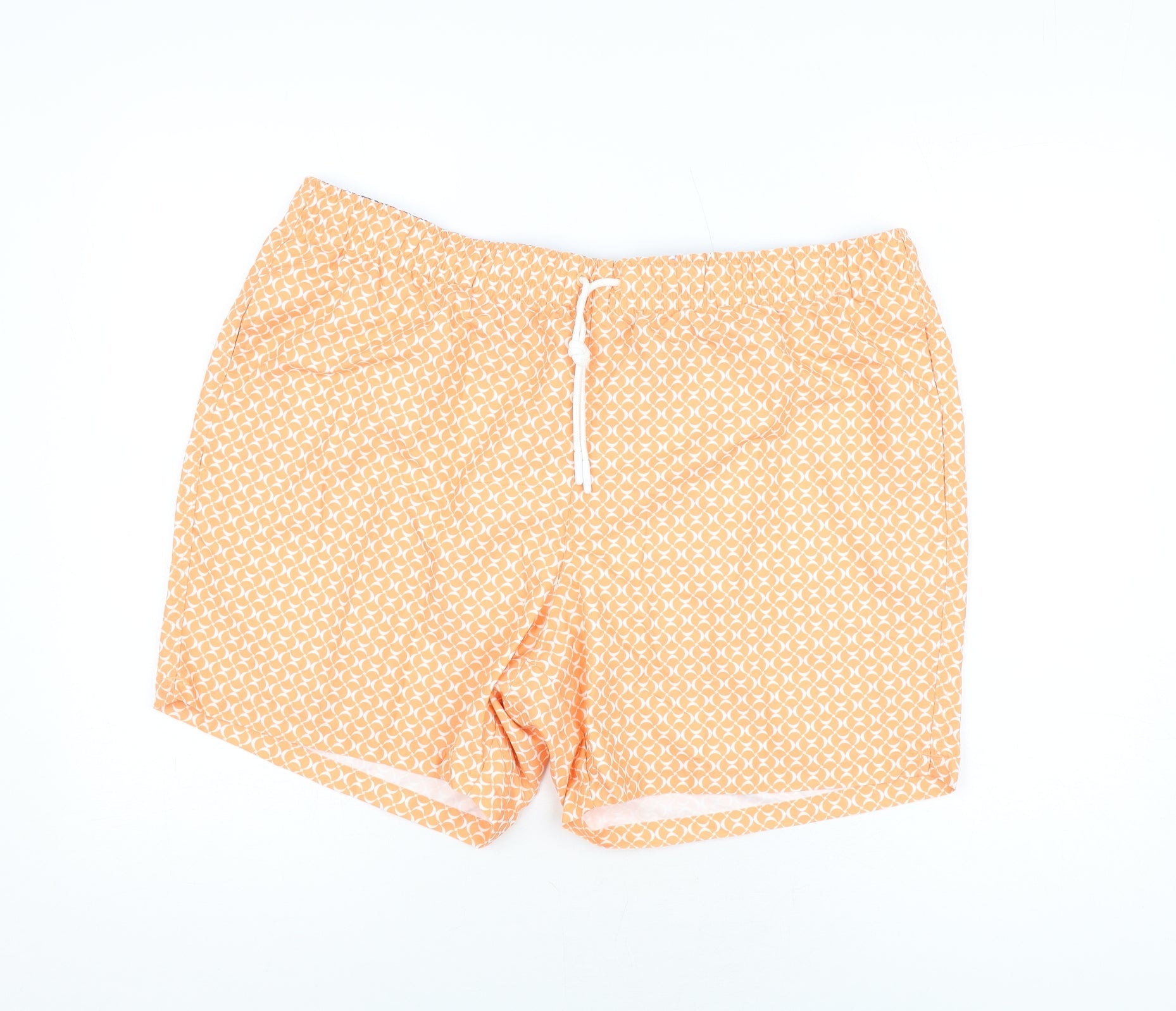 Marks and Spencer Mens Orange Geometric Polyester Bermuda Shorts Size 2XL Regular Drawstring - Swim Shorts