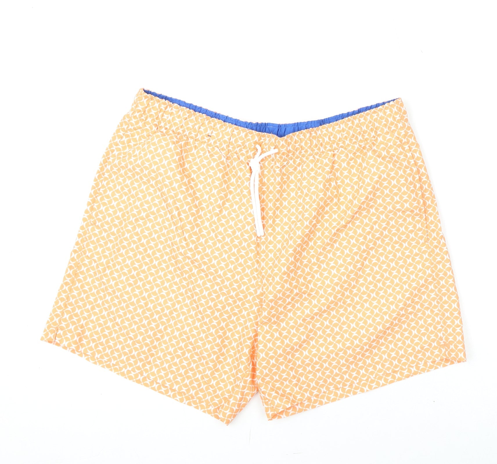 Marks and Spencer Mens Orange Geometric Polyester Bermuda Shorts Size L L6 in Regular Drawstring - Swim Shorts