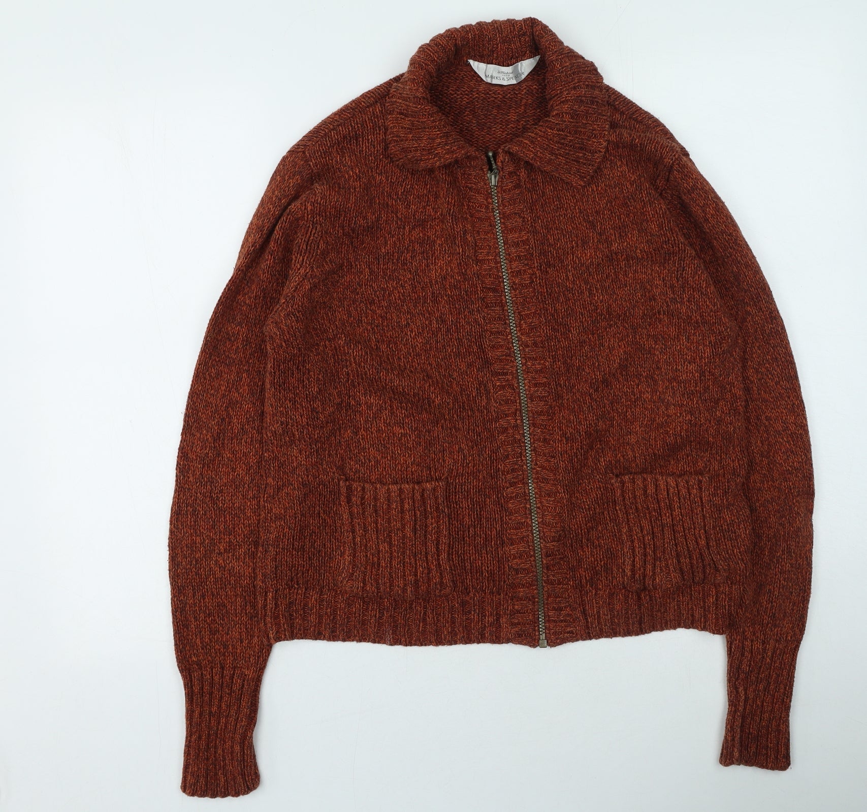 Marks and Spencer Mens Orange Round Neck Cotton Full Zip Jumper