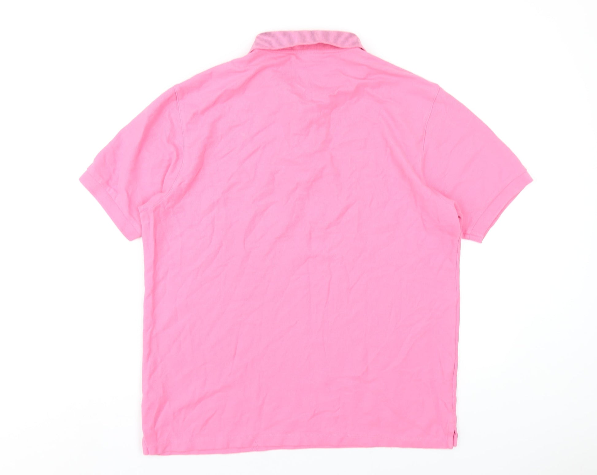 Marks and Spencer Mens Pink Cotton Polo Size M Collared Button